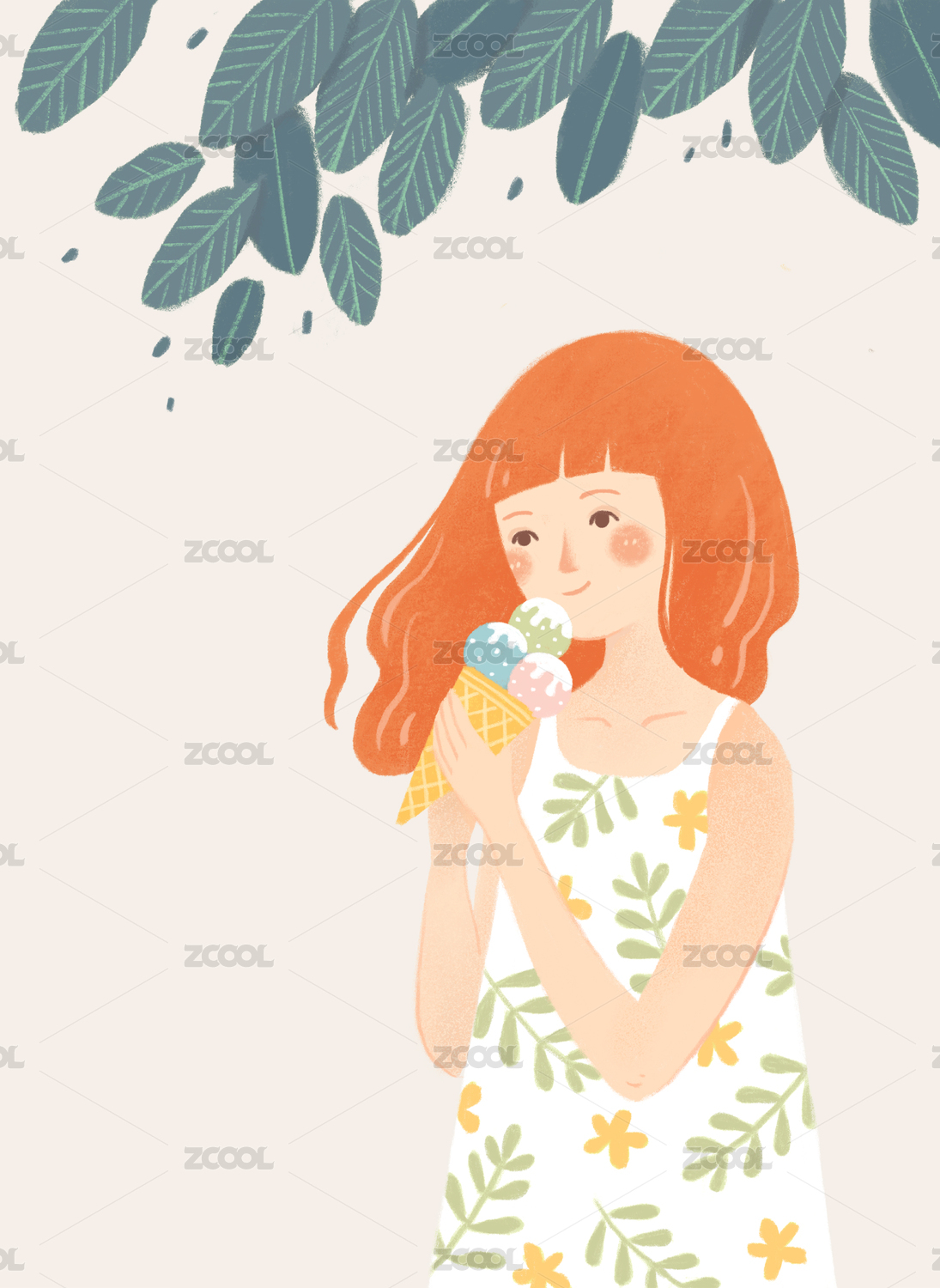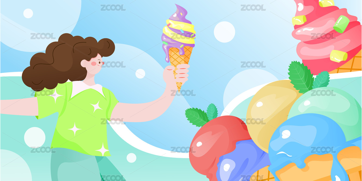 夏天美食冰淇淋雪糕插画解暑降温饮料海报