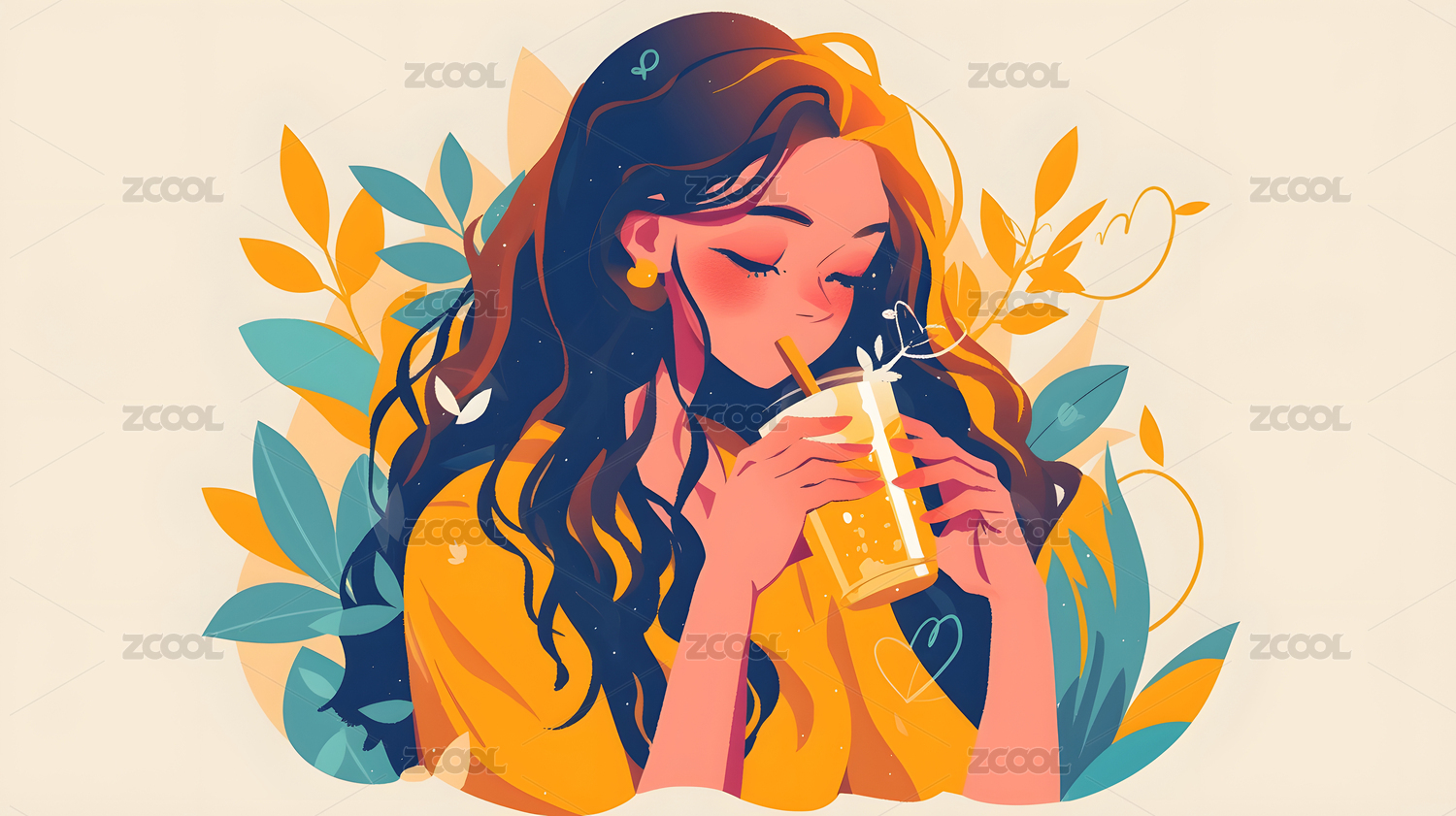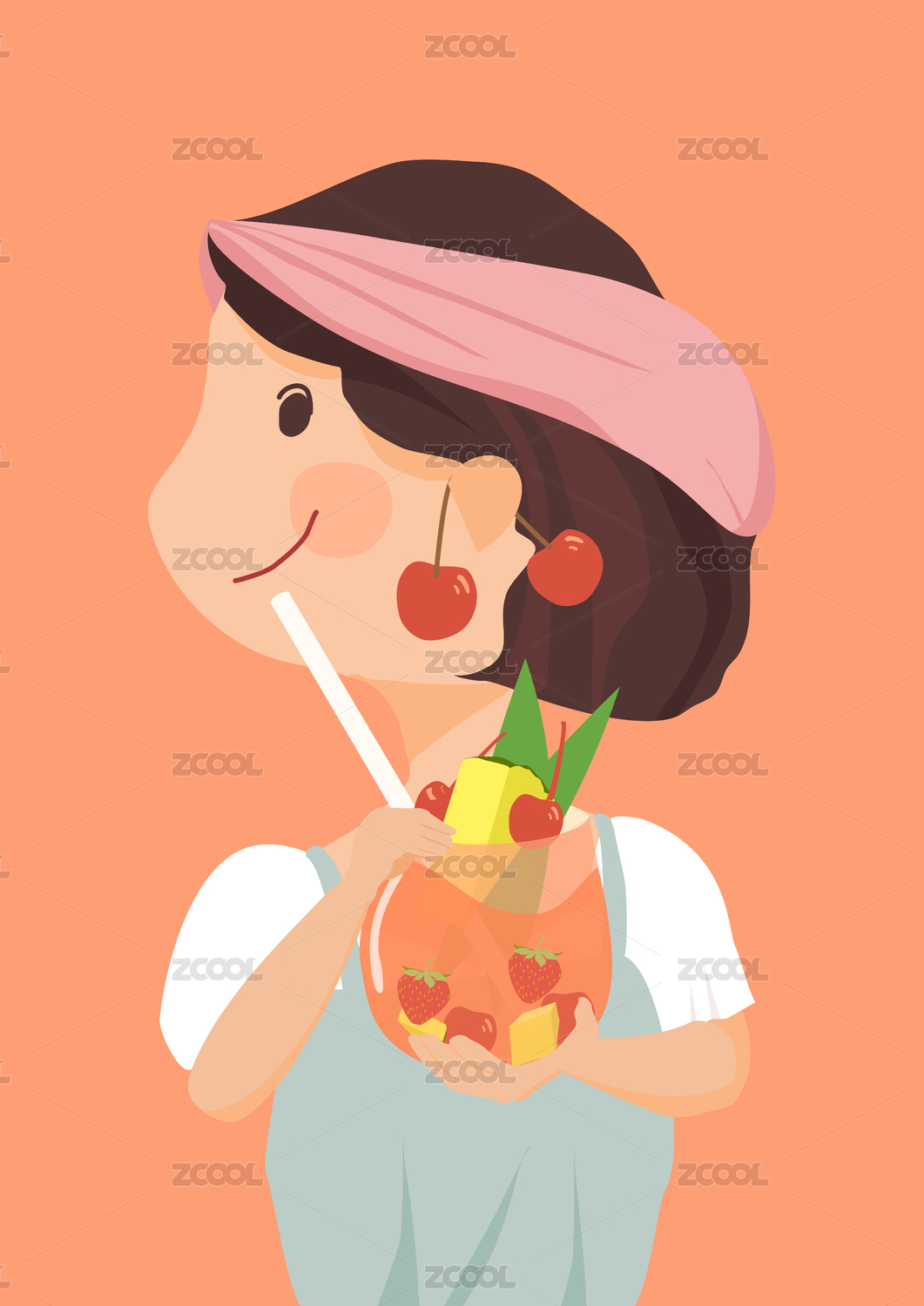 夏天女孩捧着果汁戴着樱桃耳环的女孩