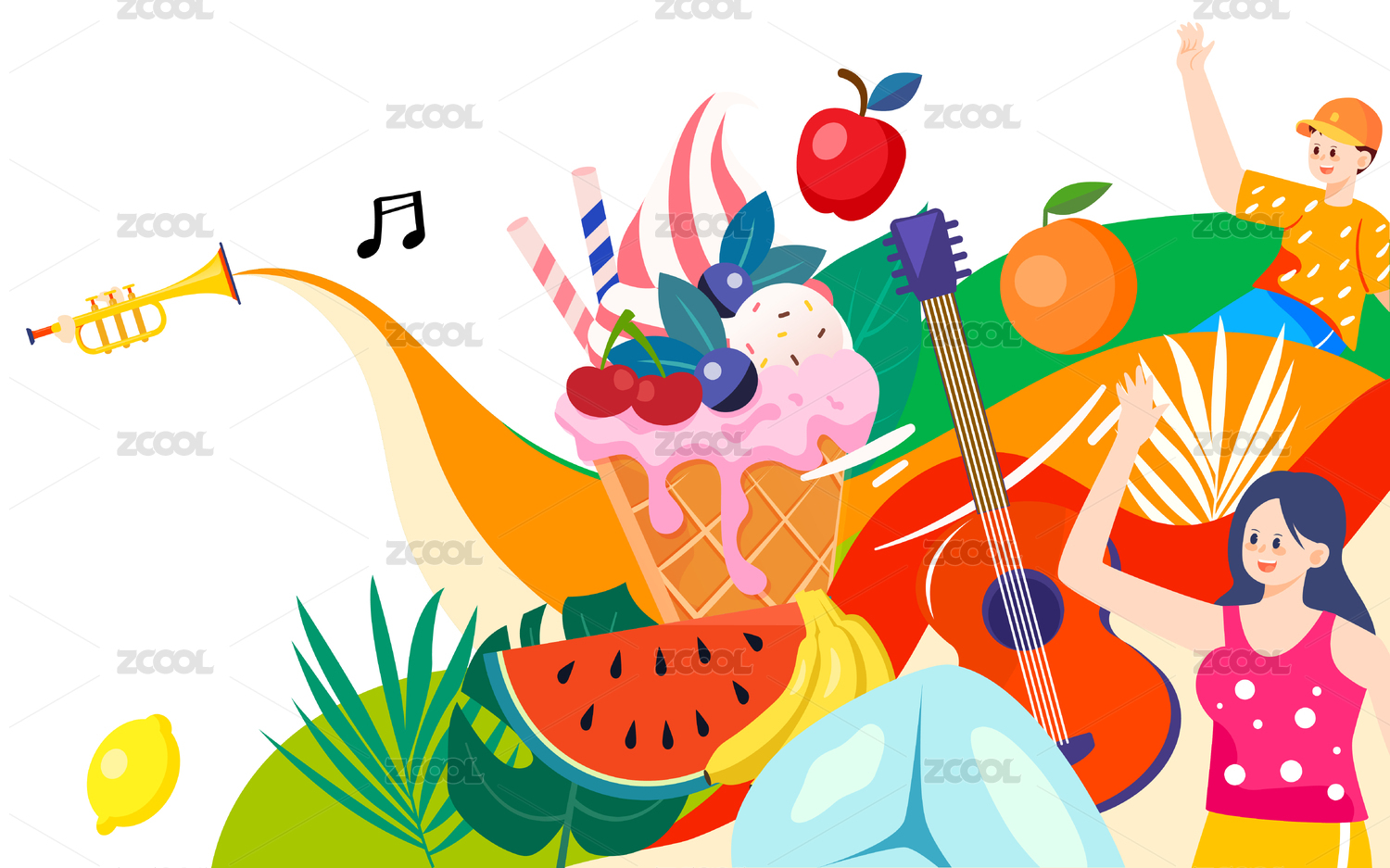 夏天人物音乐派对小暑节气夏日美食雪糕插画