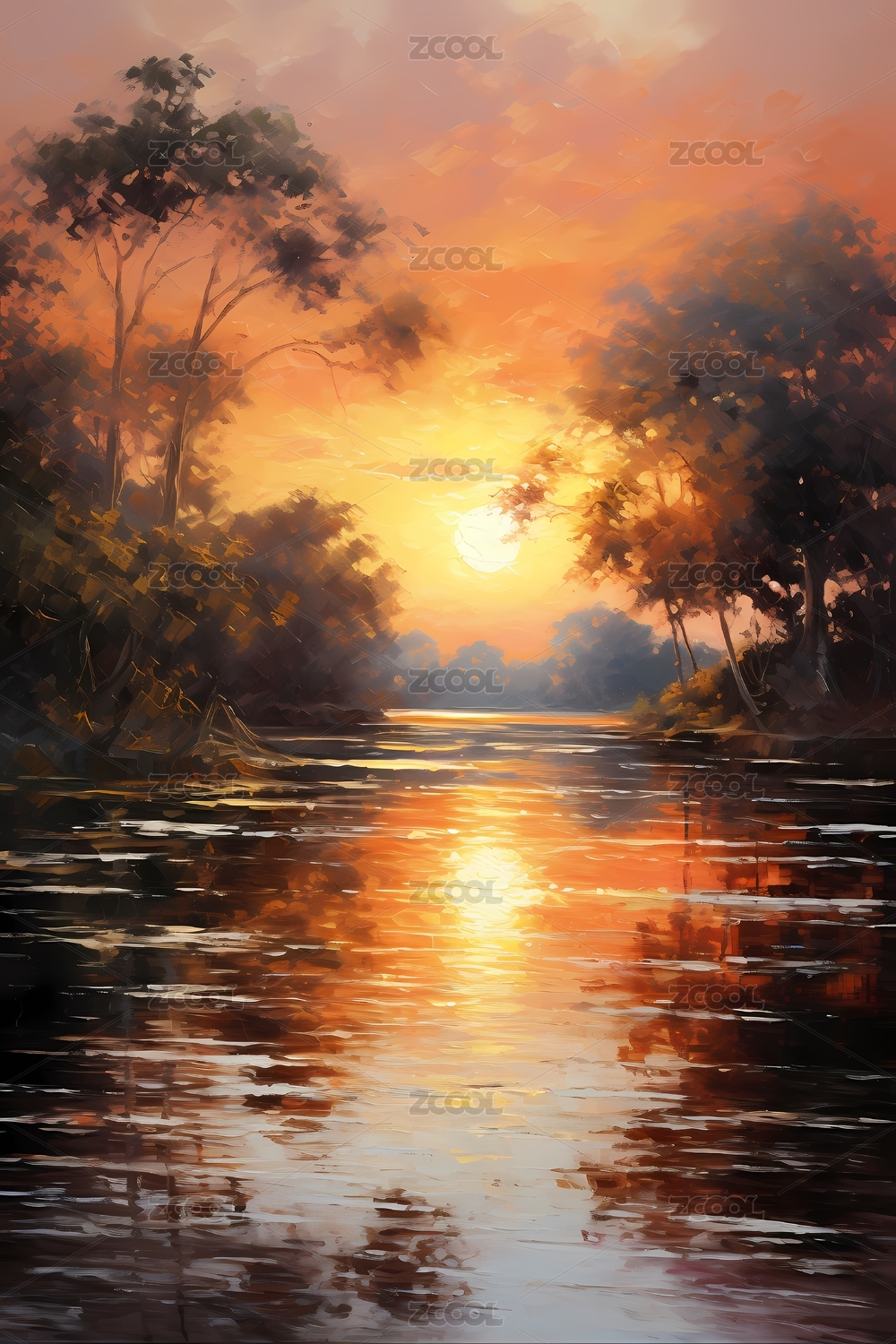 河边日落海报装饰画
