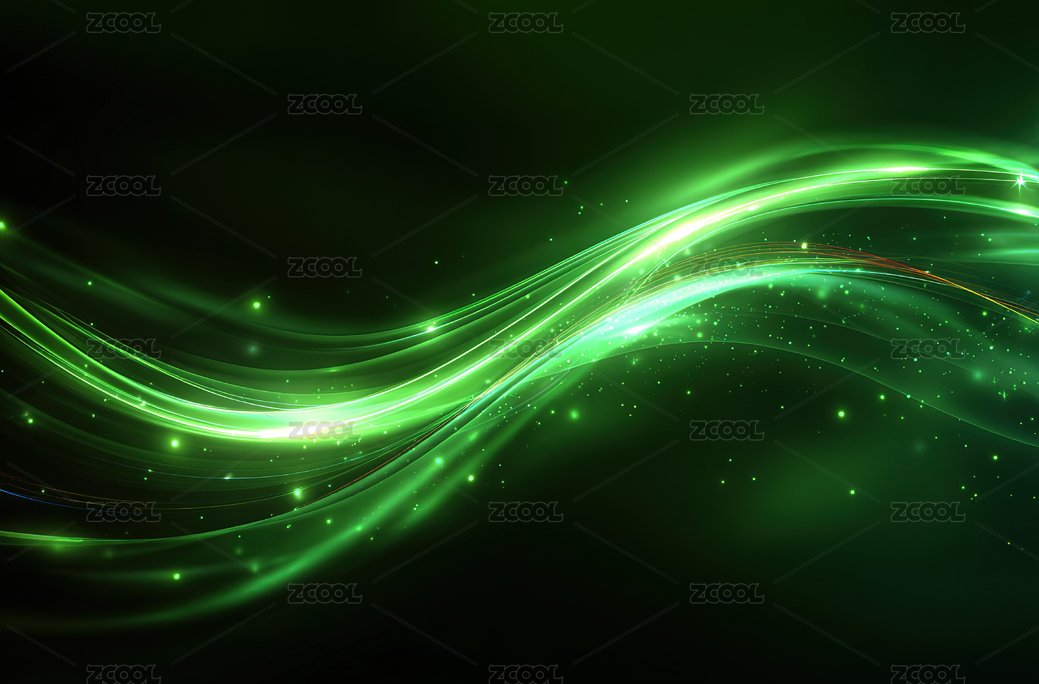 绿色未来感抽象波浪背景带有发光粒子
