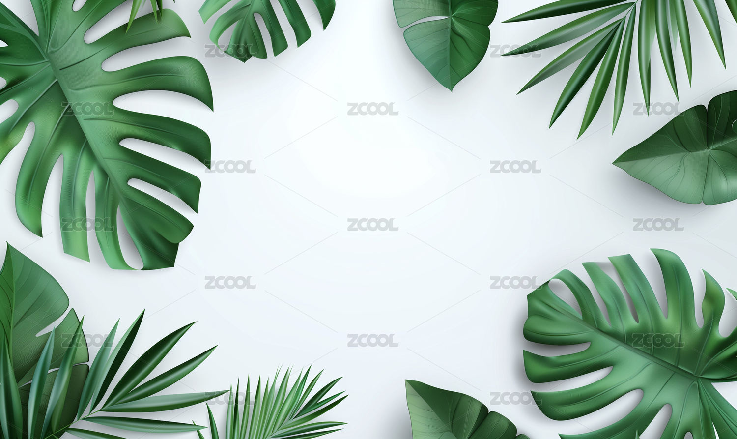 热带叶子白色背景顶视图海报PPT背景