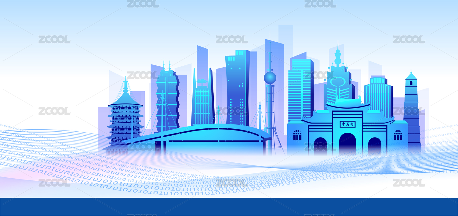 中国河南省洛阳市商务科技城市彩色插画
