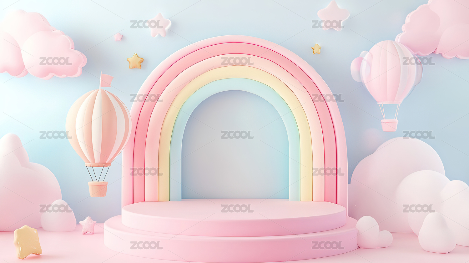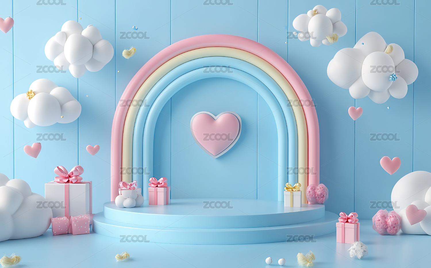 可爱的粉彩产品展示架,蓝色背景上有螺旋彩
