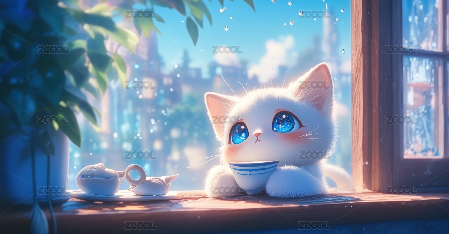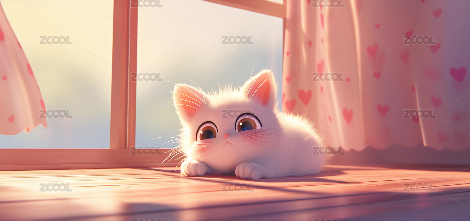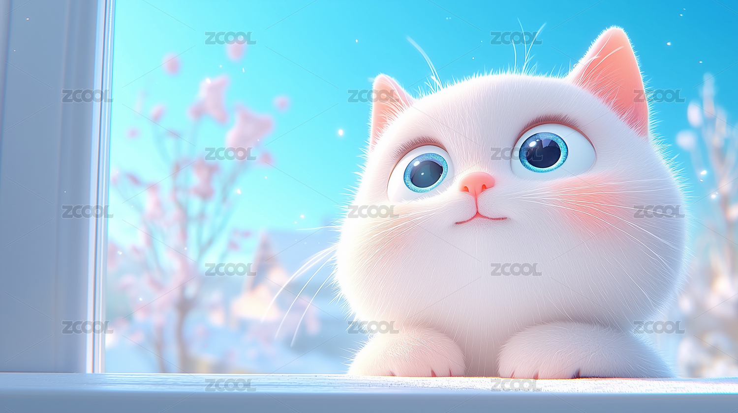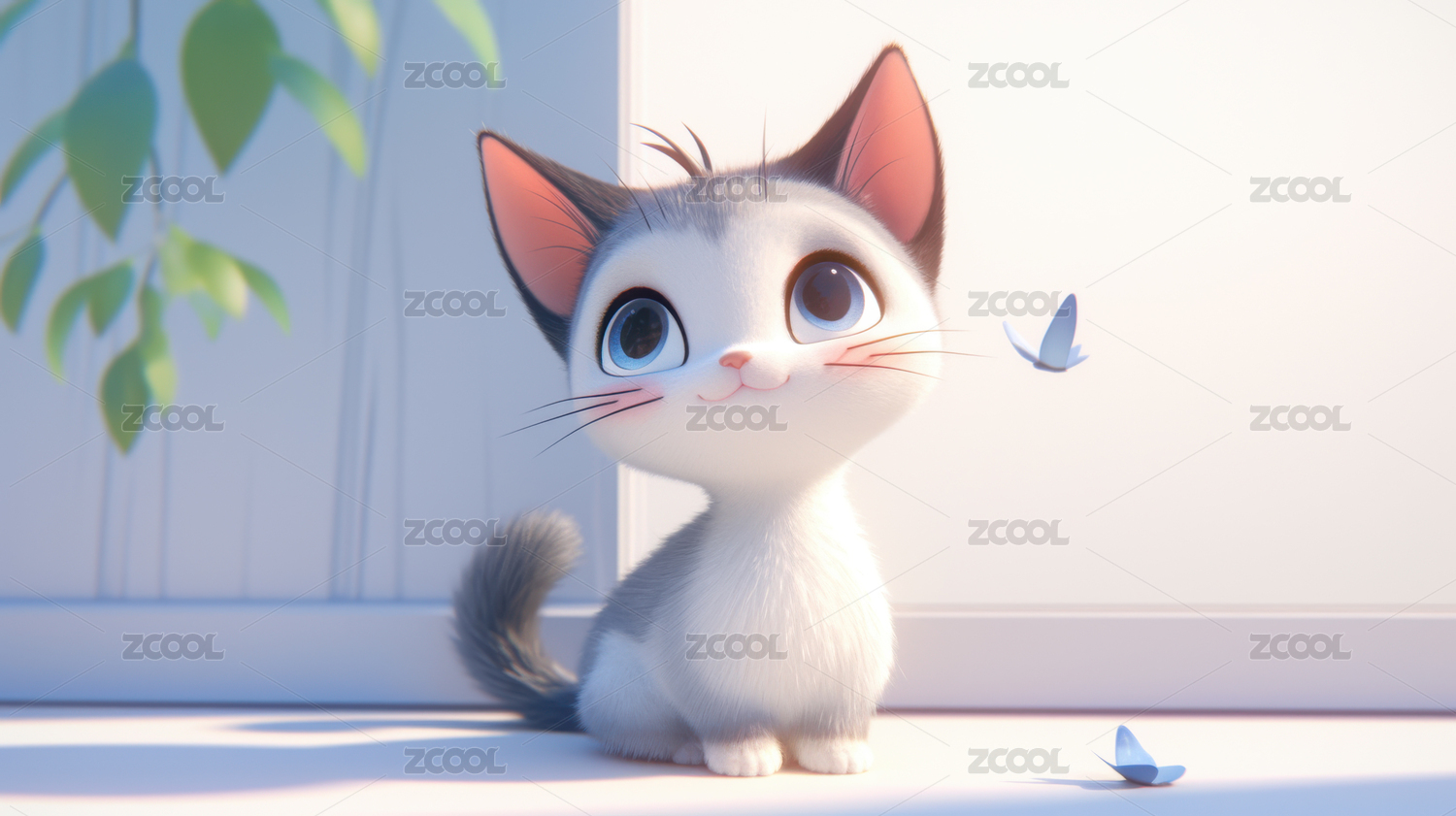 可爱,卡通,插画,白色,猫,无人,渲染图,三维插画,宠物,形象设计