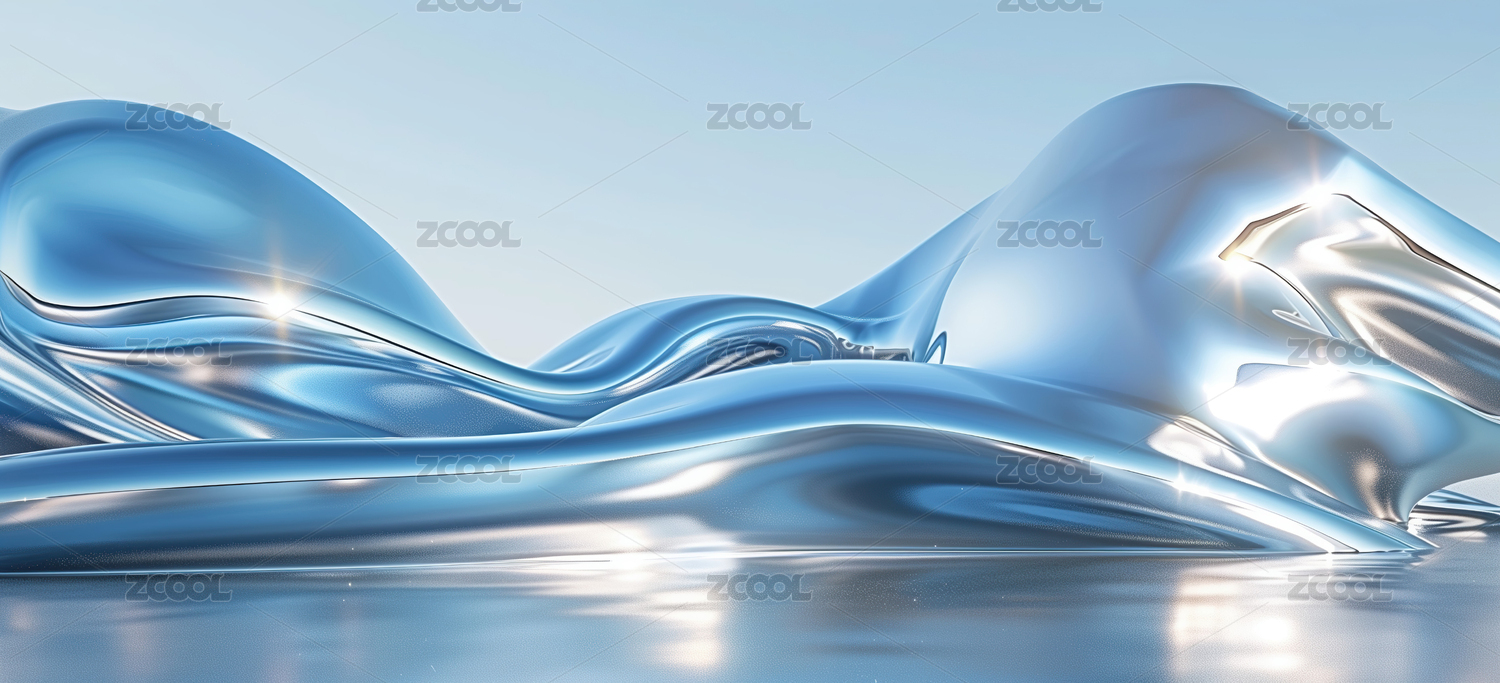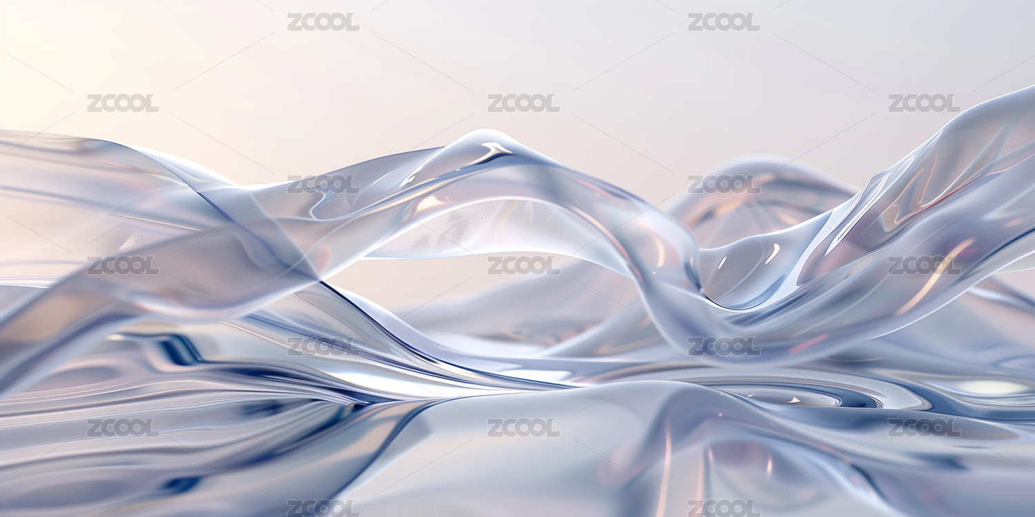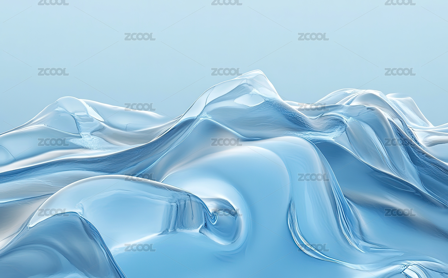 晶莹反射光影起伏波浪流淌透明液体3d插画