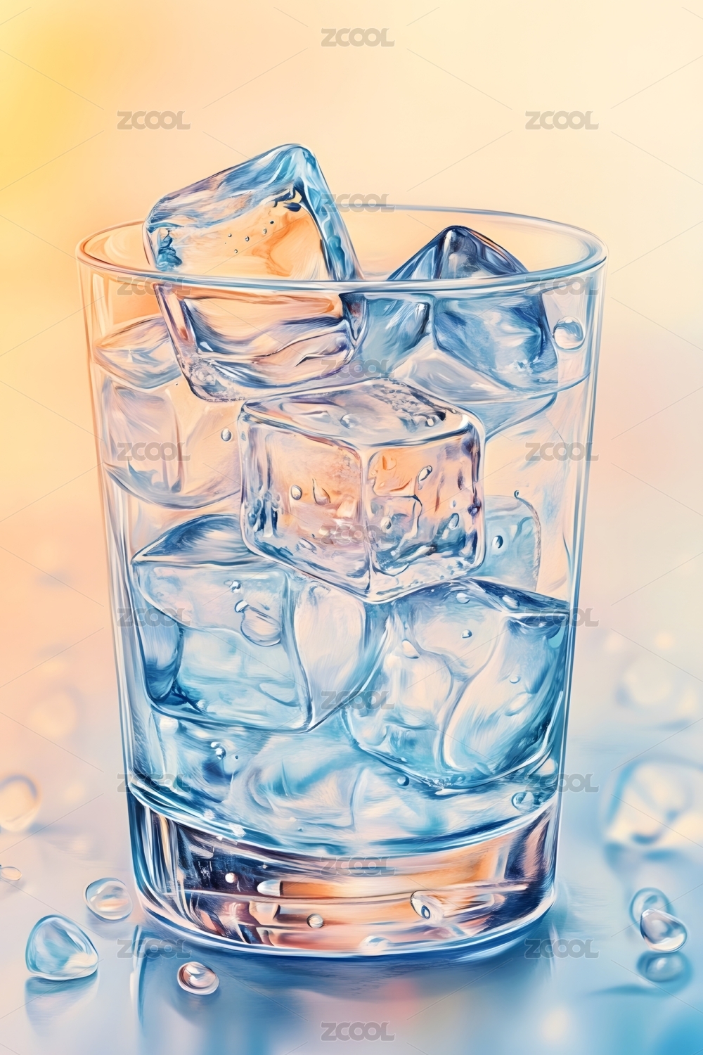 晶莹剔透的水杯与光影效果