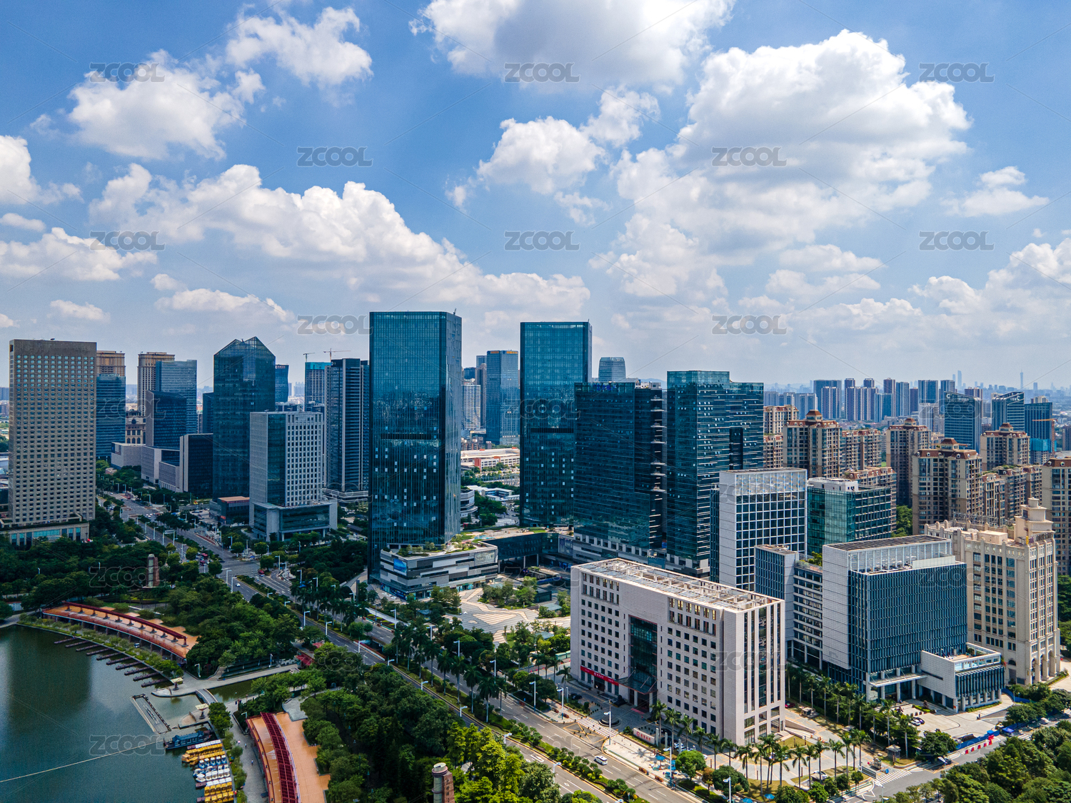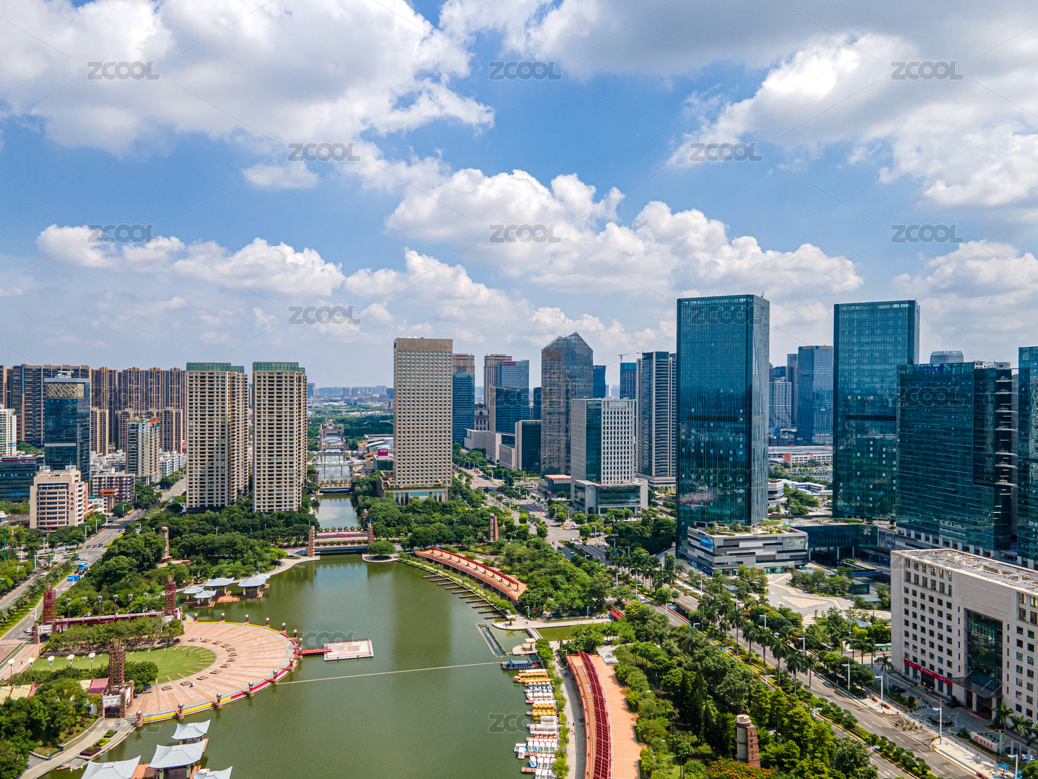 航拍佛山千灯湖和金融高新区城市天际线全景