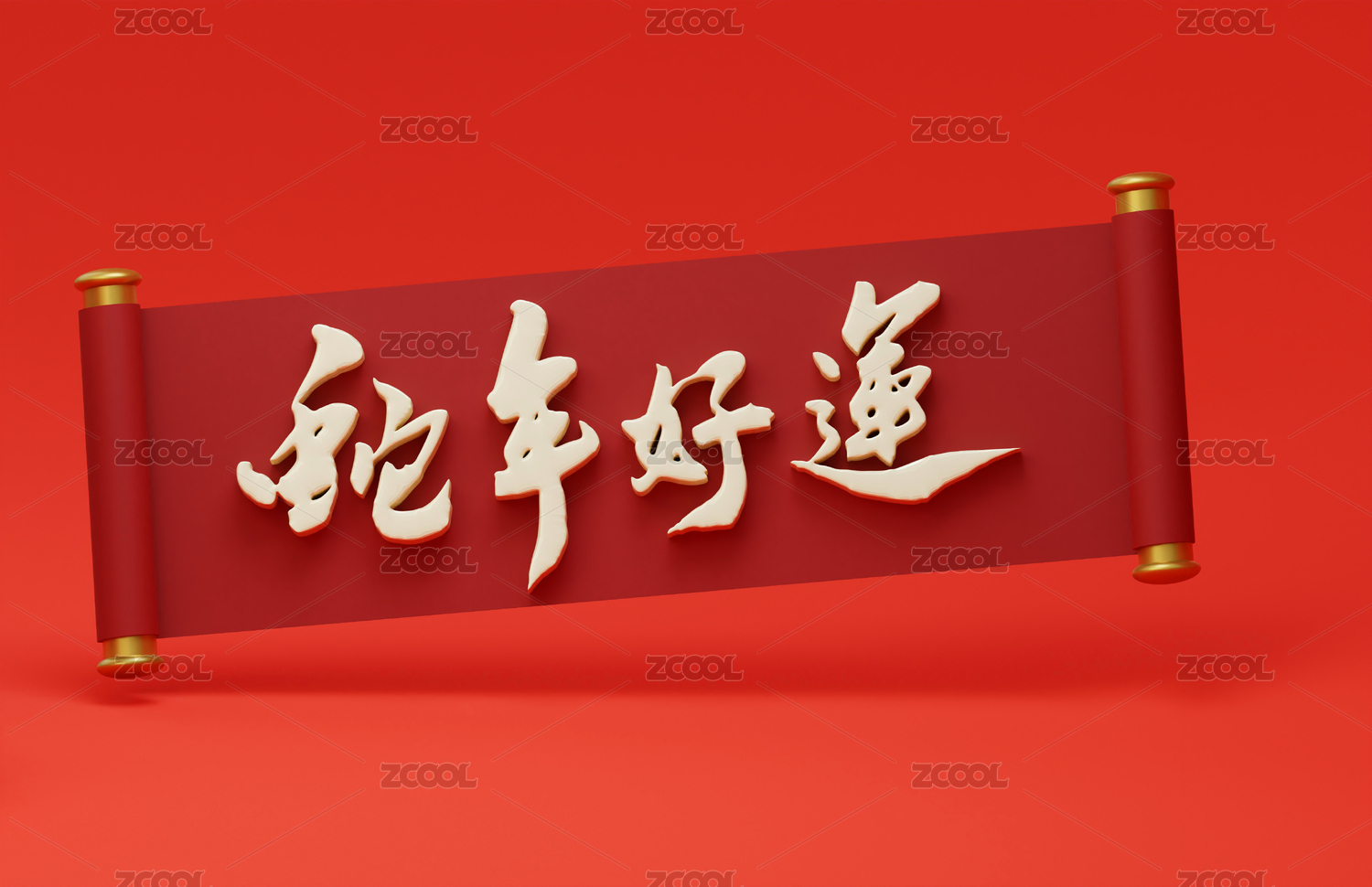 3D创意设计中国蛇年新春灯笼卷轴书法年会
