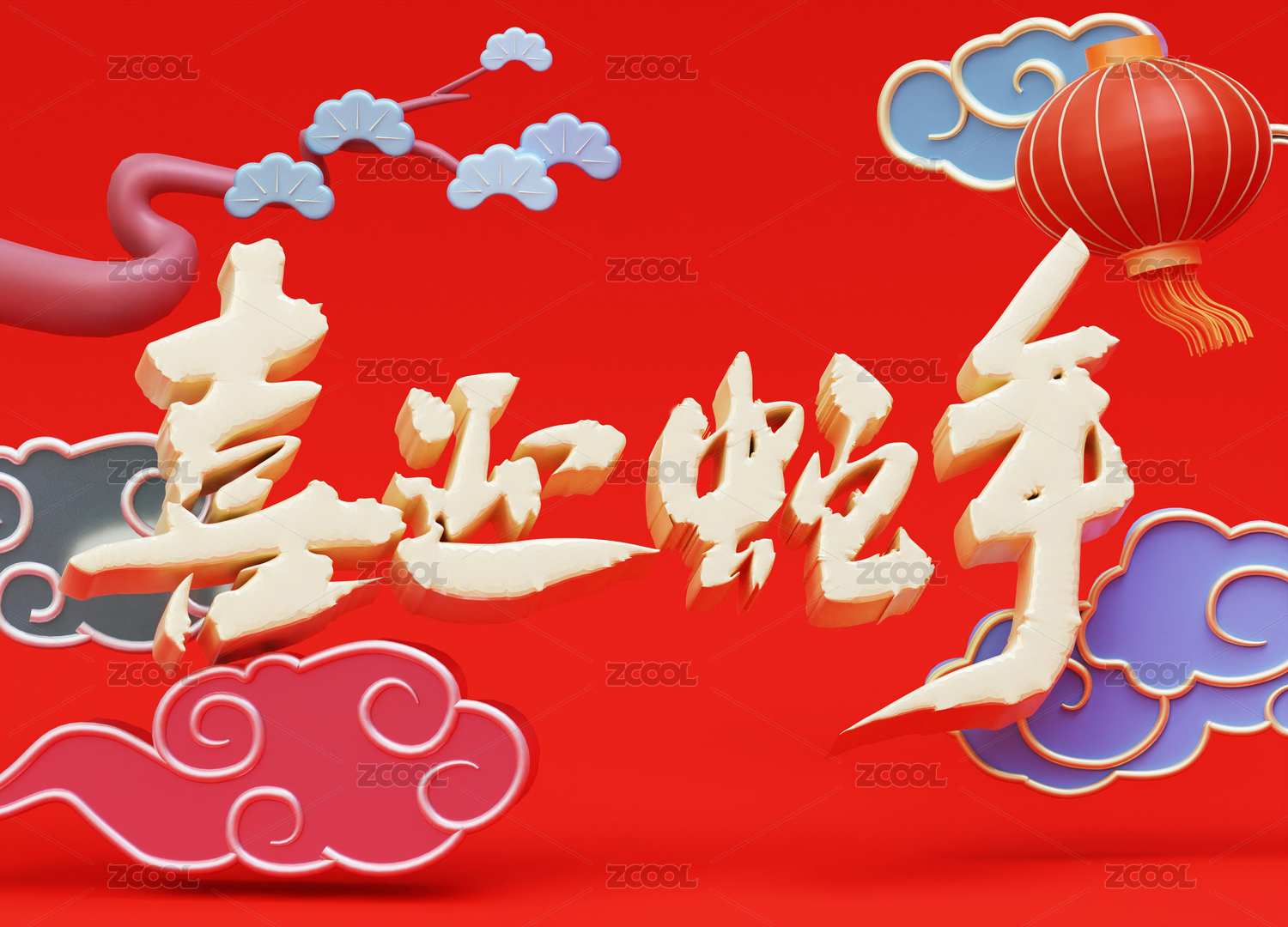 2025蛇年中国风春节节日庆典3D设计