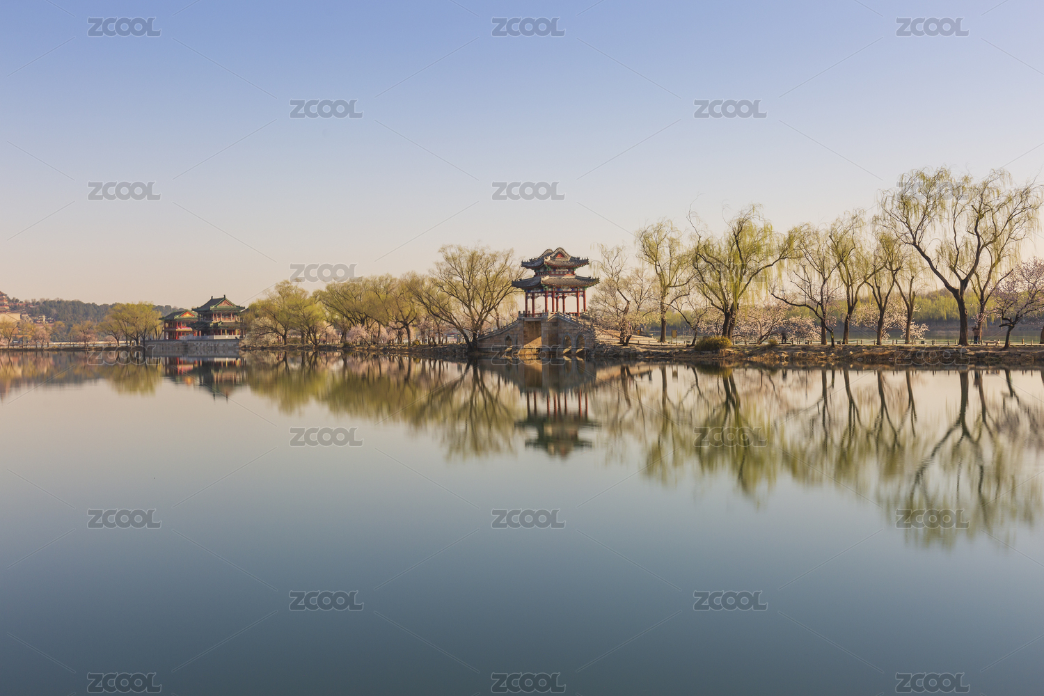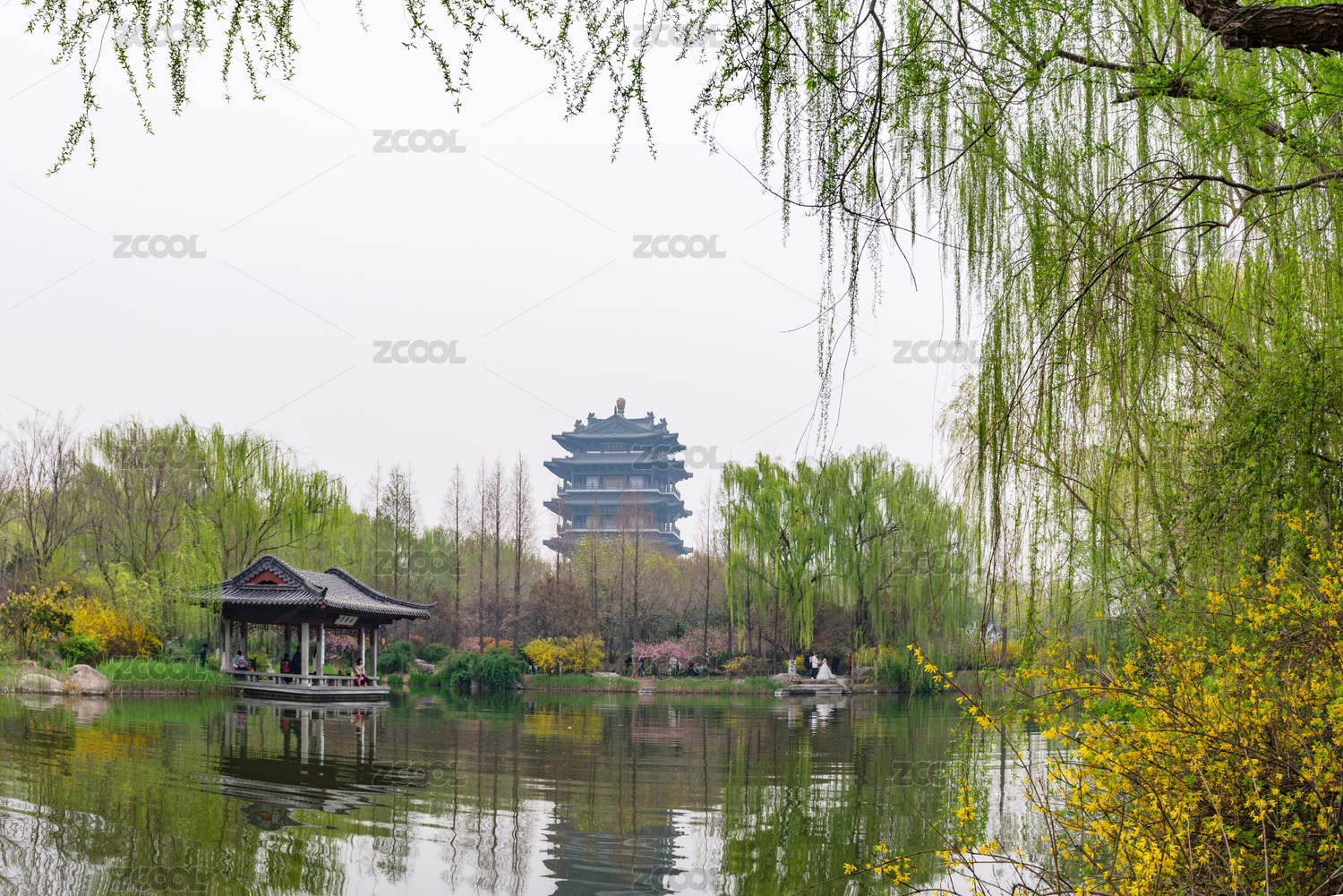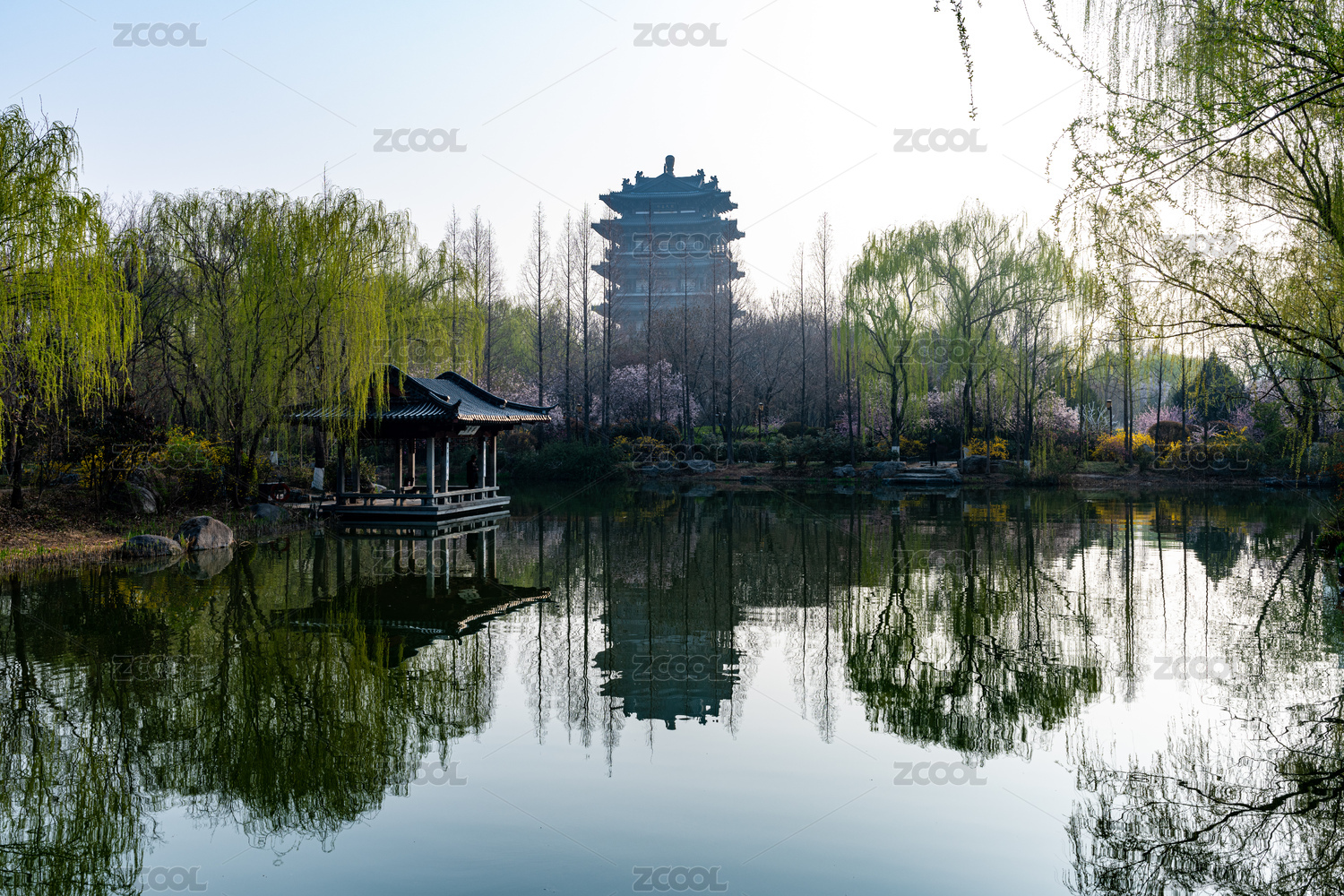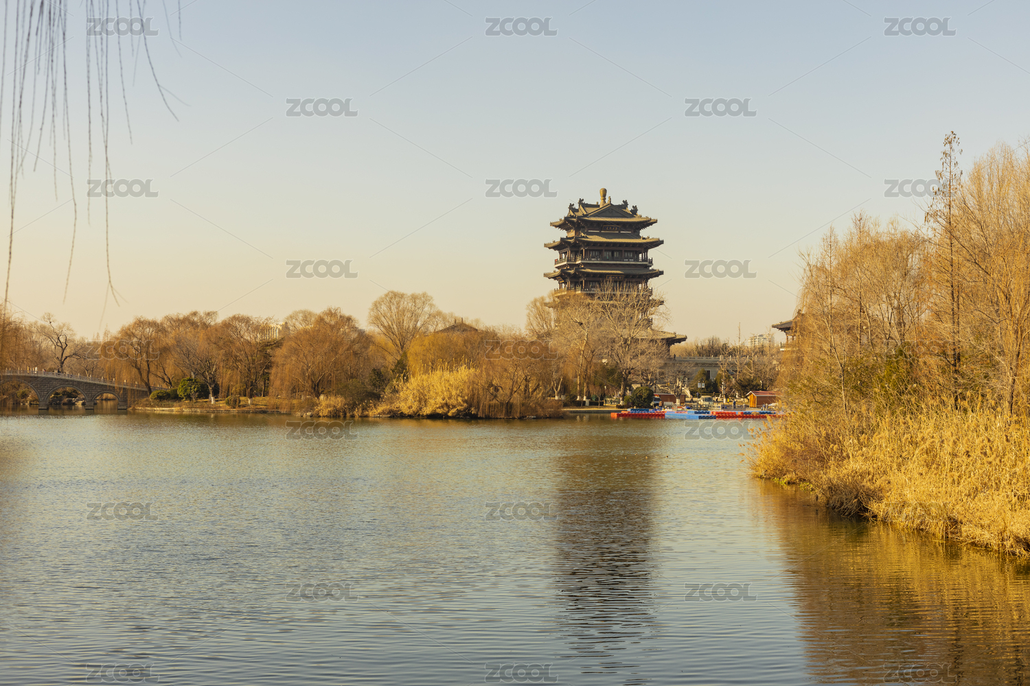 山东省济南市大明湖风景区春日黄昏美丽风光