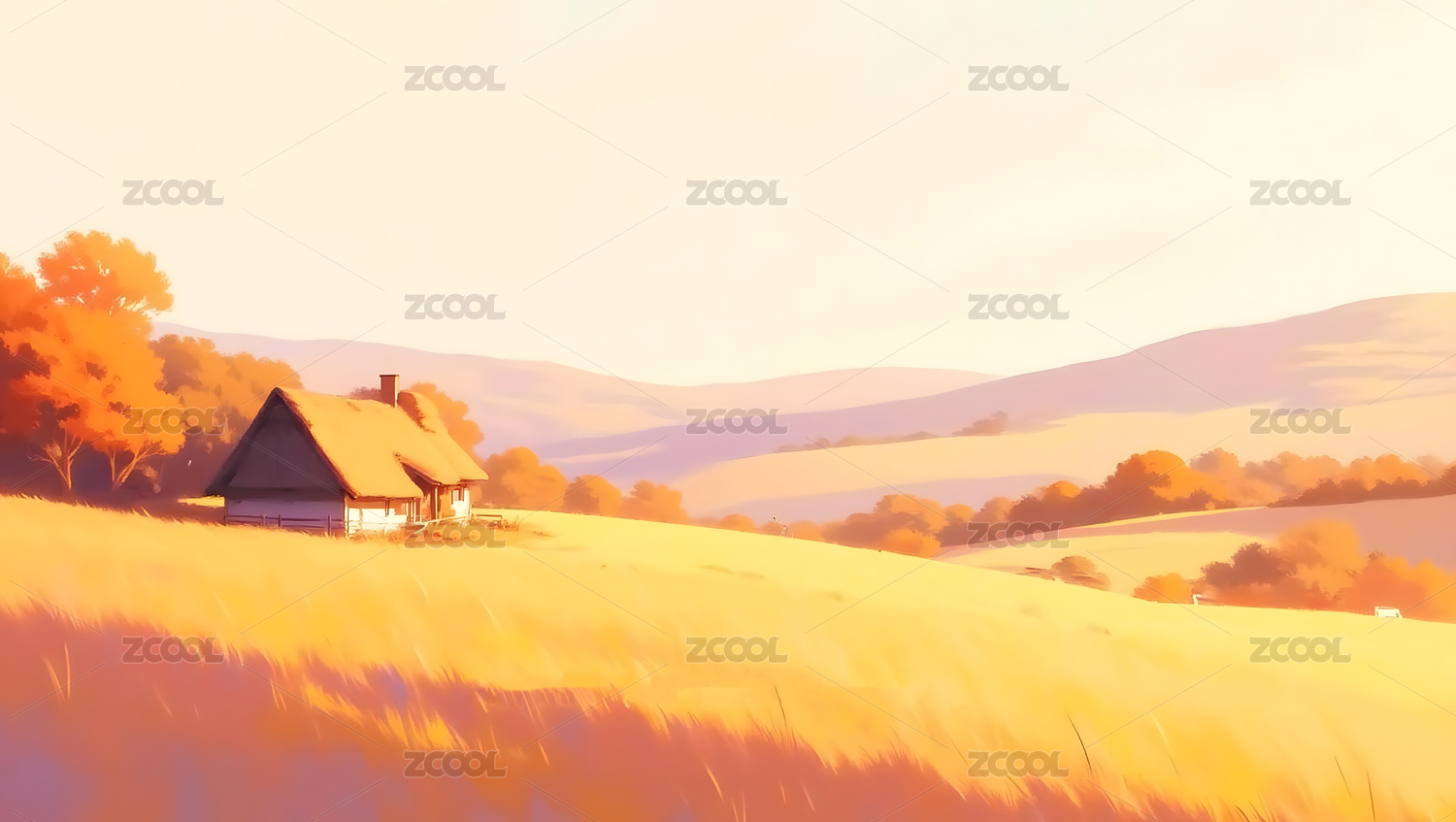 夏天户外自然节日大暑清新治愈唯美卡通漫画