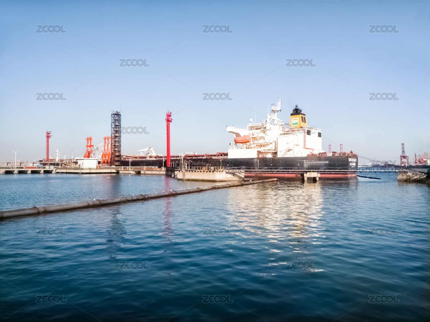 液化天然气LNG接收站码头卸料臂管道储罐蓝天白云大气形象图