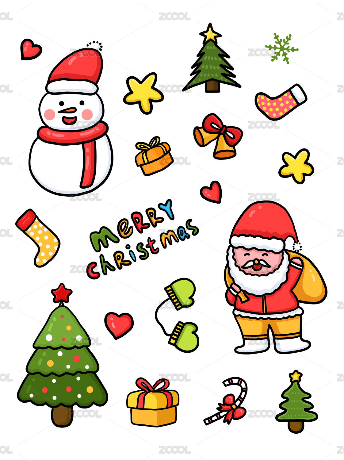 圣诞节小元素贴纸可爱手绘风插画