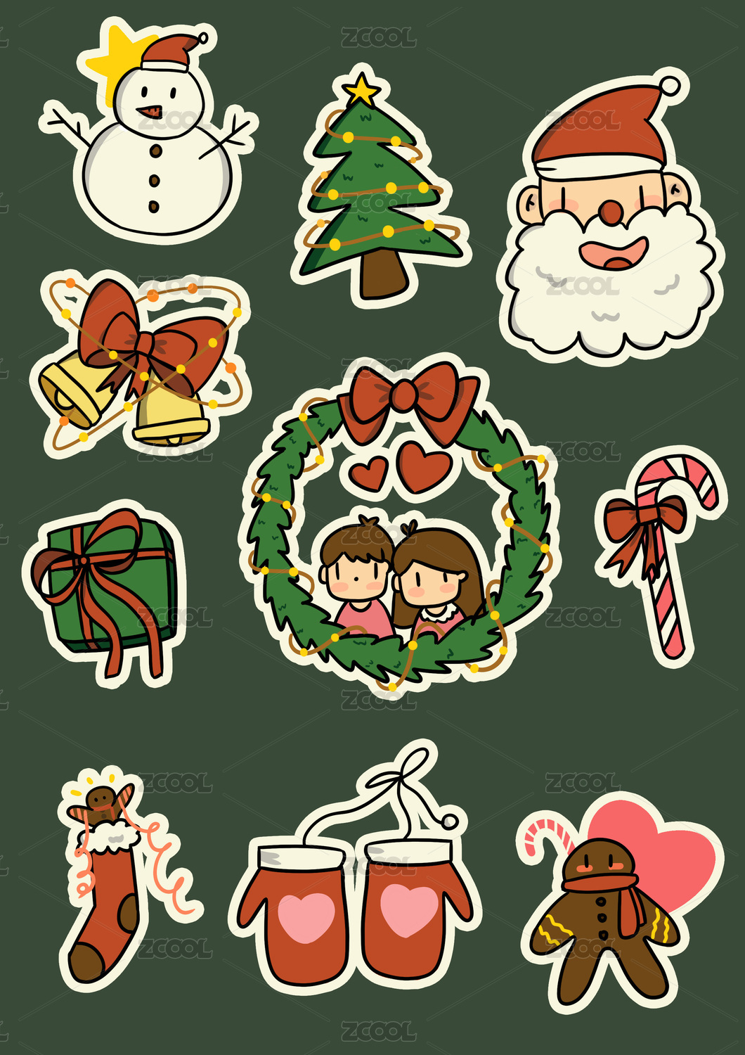 圣诞节,贴纸,装饰,元素,组合,圣诞,素材,节日,卡通,可爱