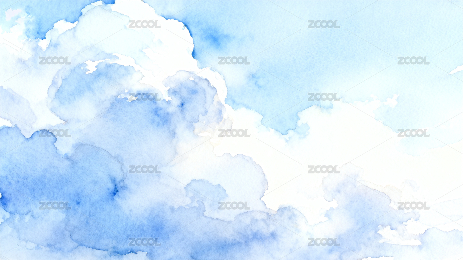 蓝白颜料绘就天空云朵呈现清新艺术的视觉