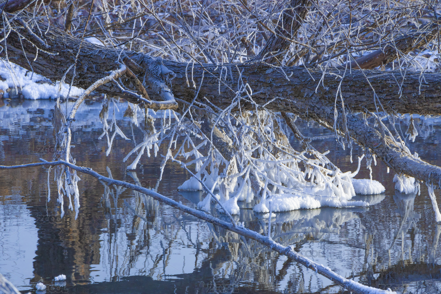 中国呼伦贝尔冬天雪后的雾凇和冰冻的河流