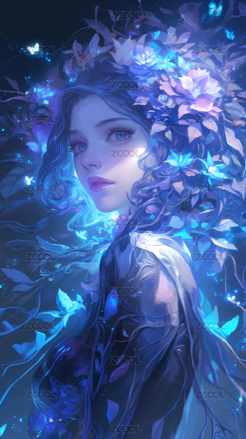 女孩,女子,女人,美女,肖像,柔软,直视,松散,卷发,装饰