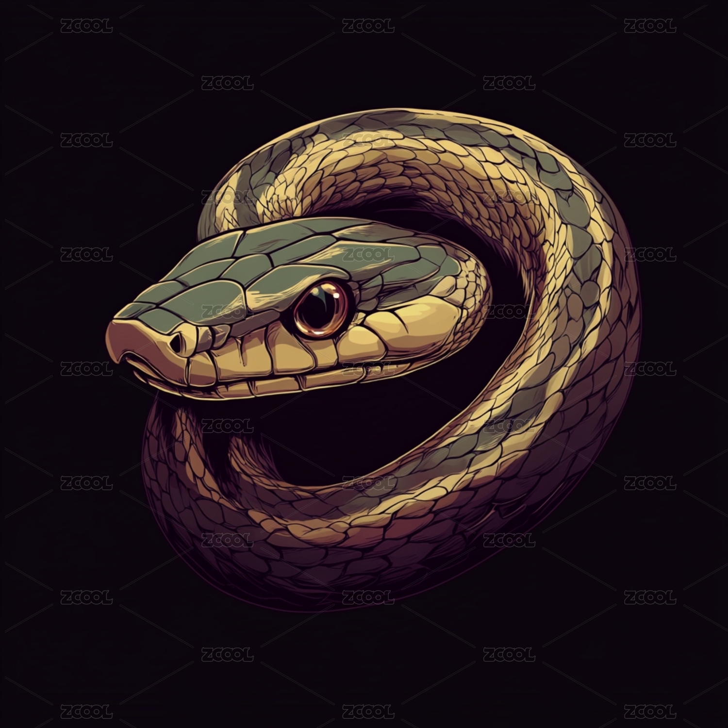 蛇年主题灵动缠绕的蛇壁纸插画艺术
