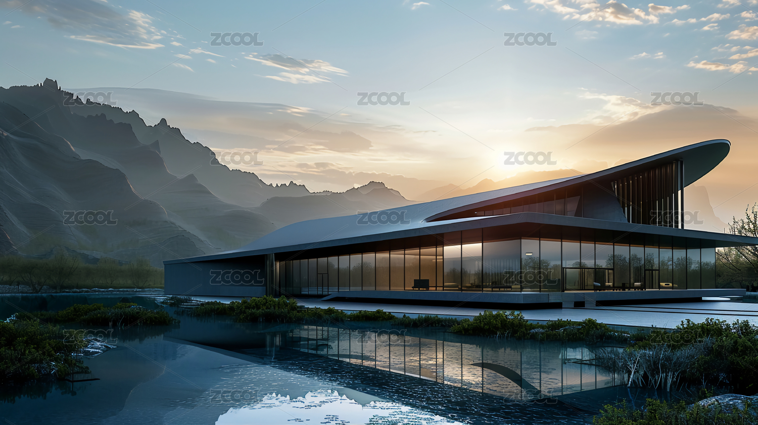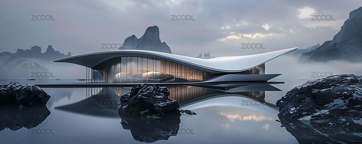 水面的简约北欧建筑