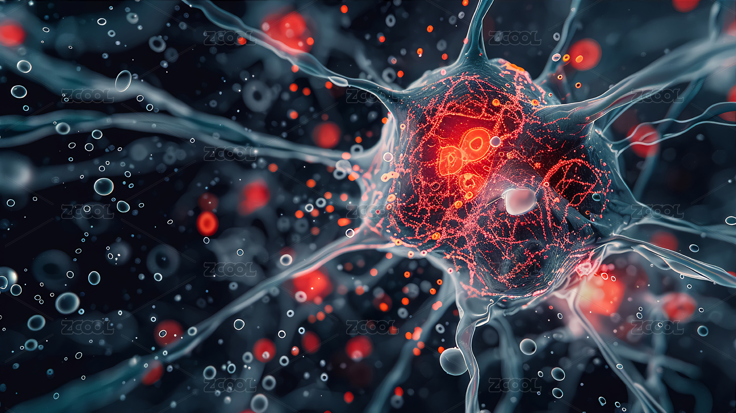 神经元,细胞,微距,特写,医疗,科研,科技,光影,数字,影像