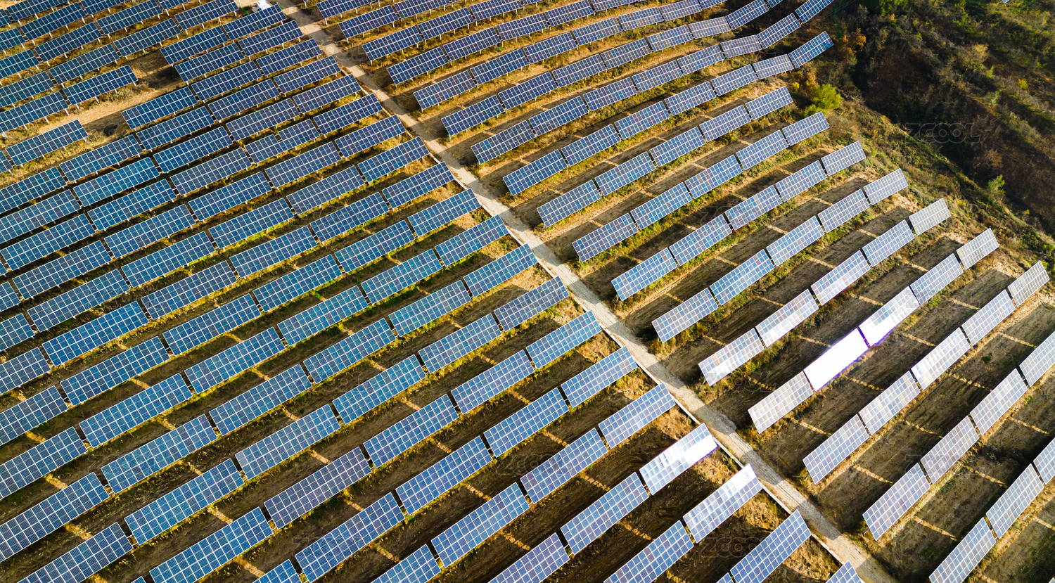 航拍户外的太阳能光伏基地