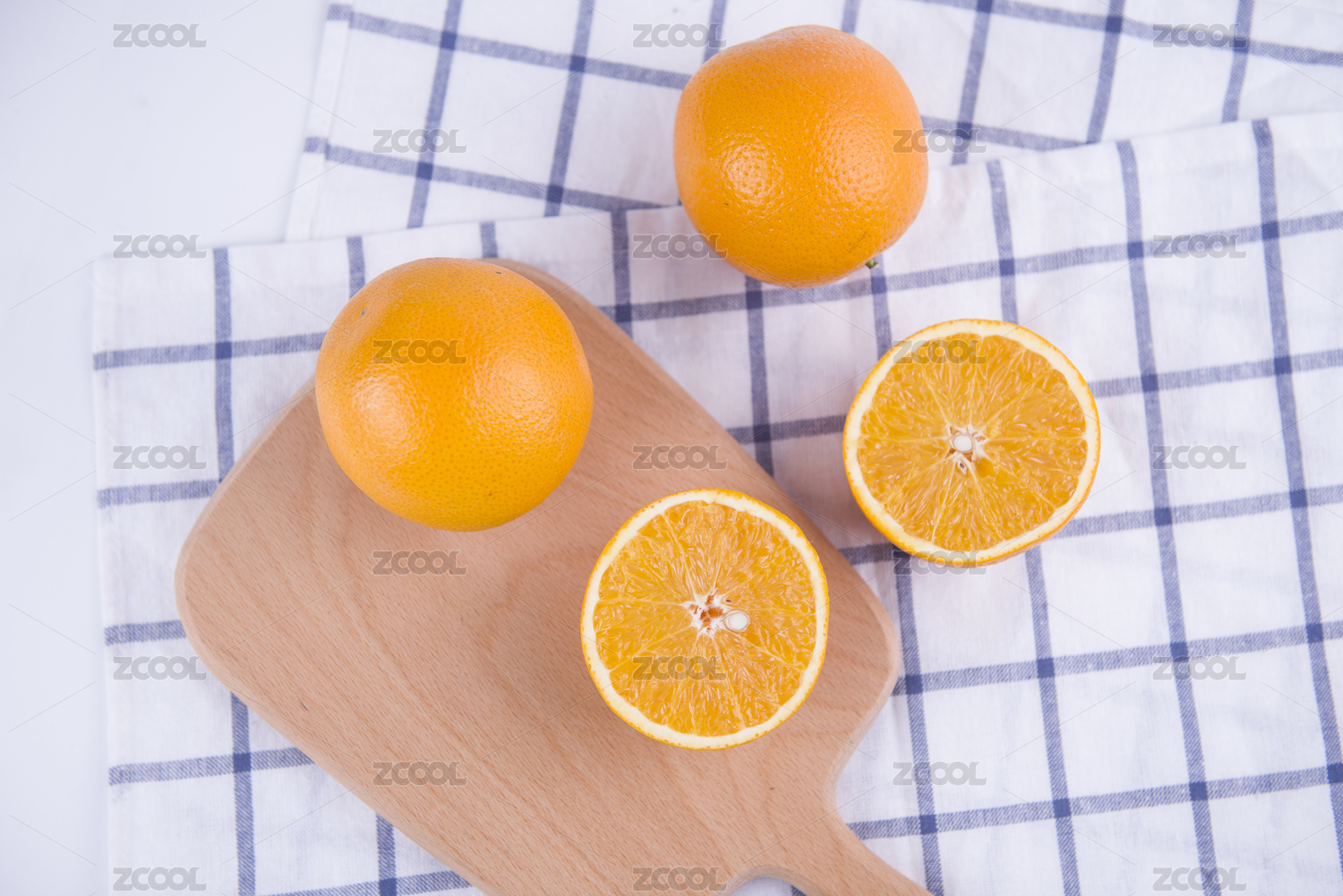木底垫子上放着一盘赣南脐橙和脐橙果肉