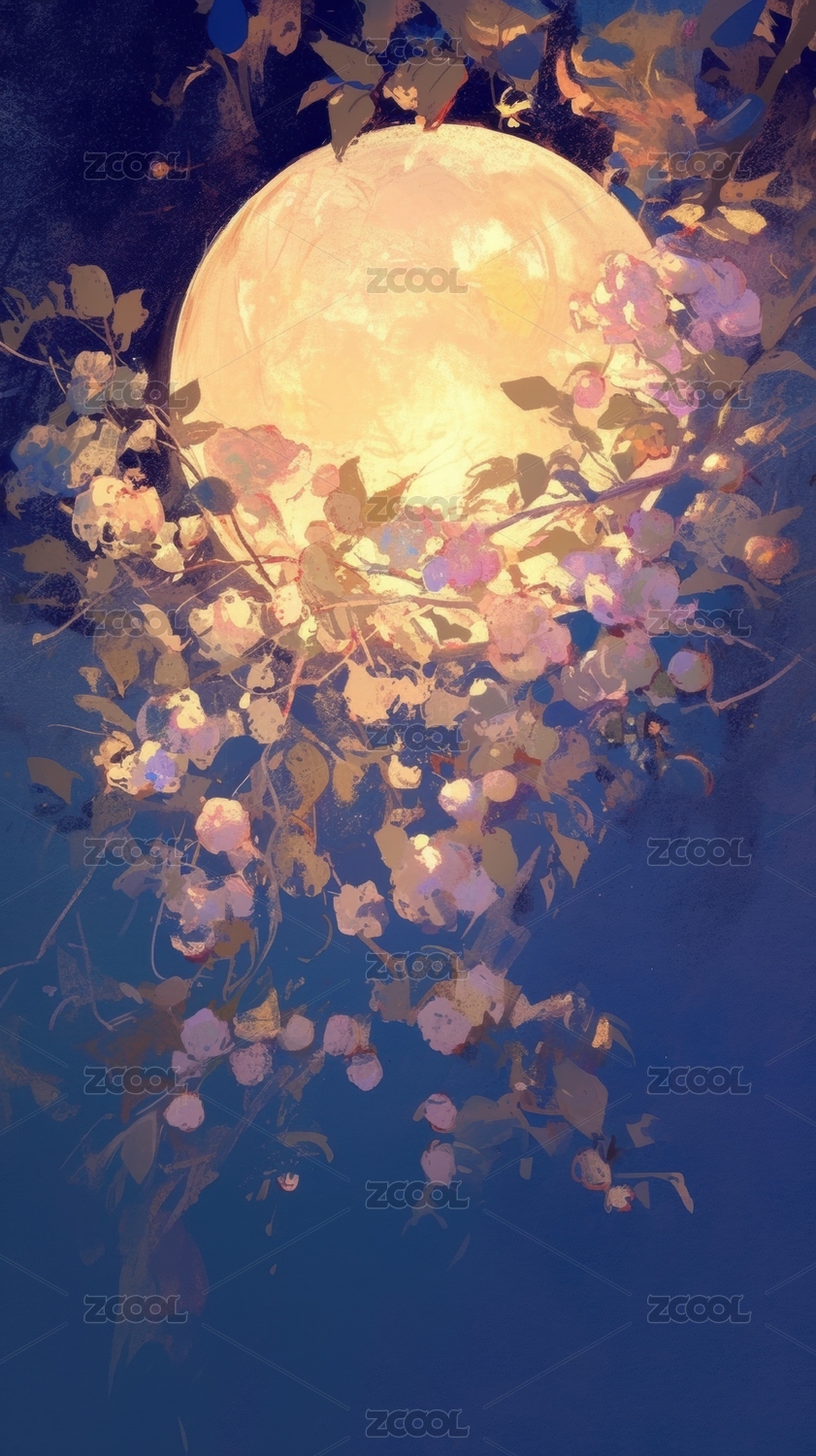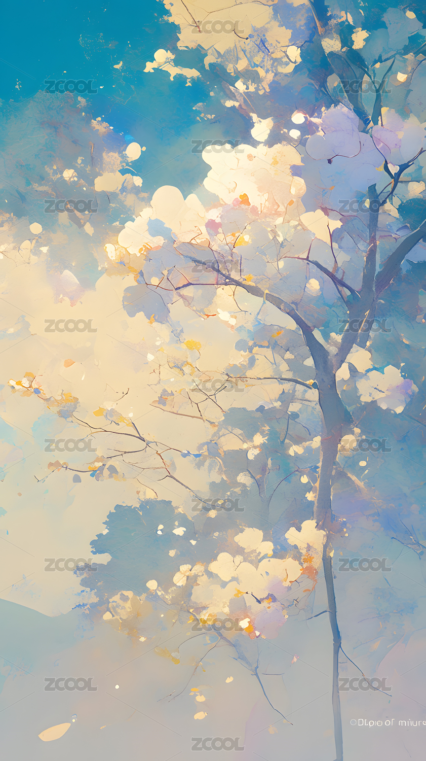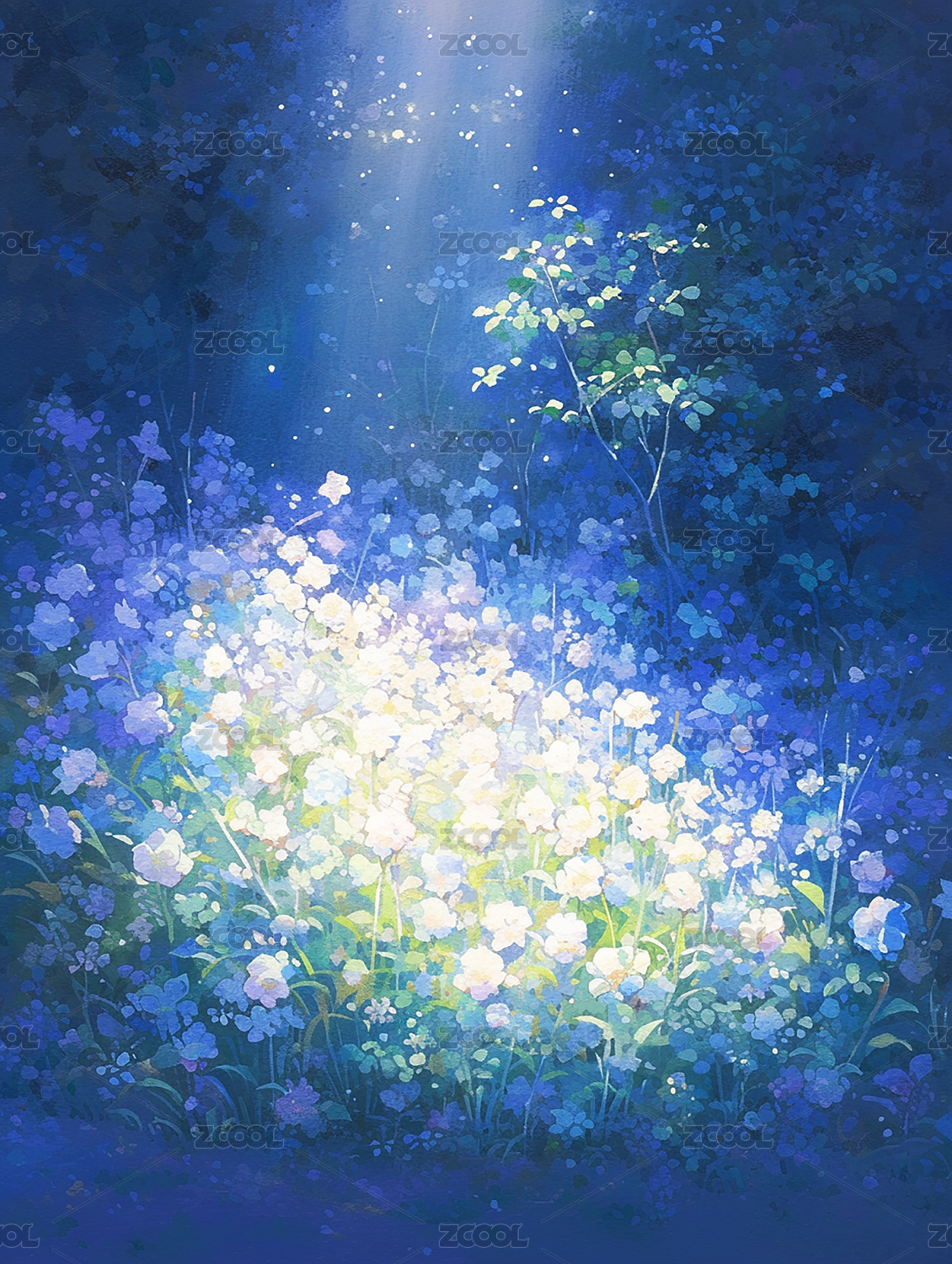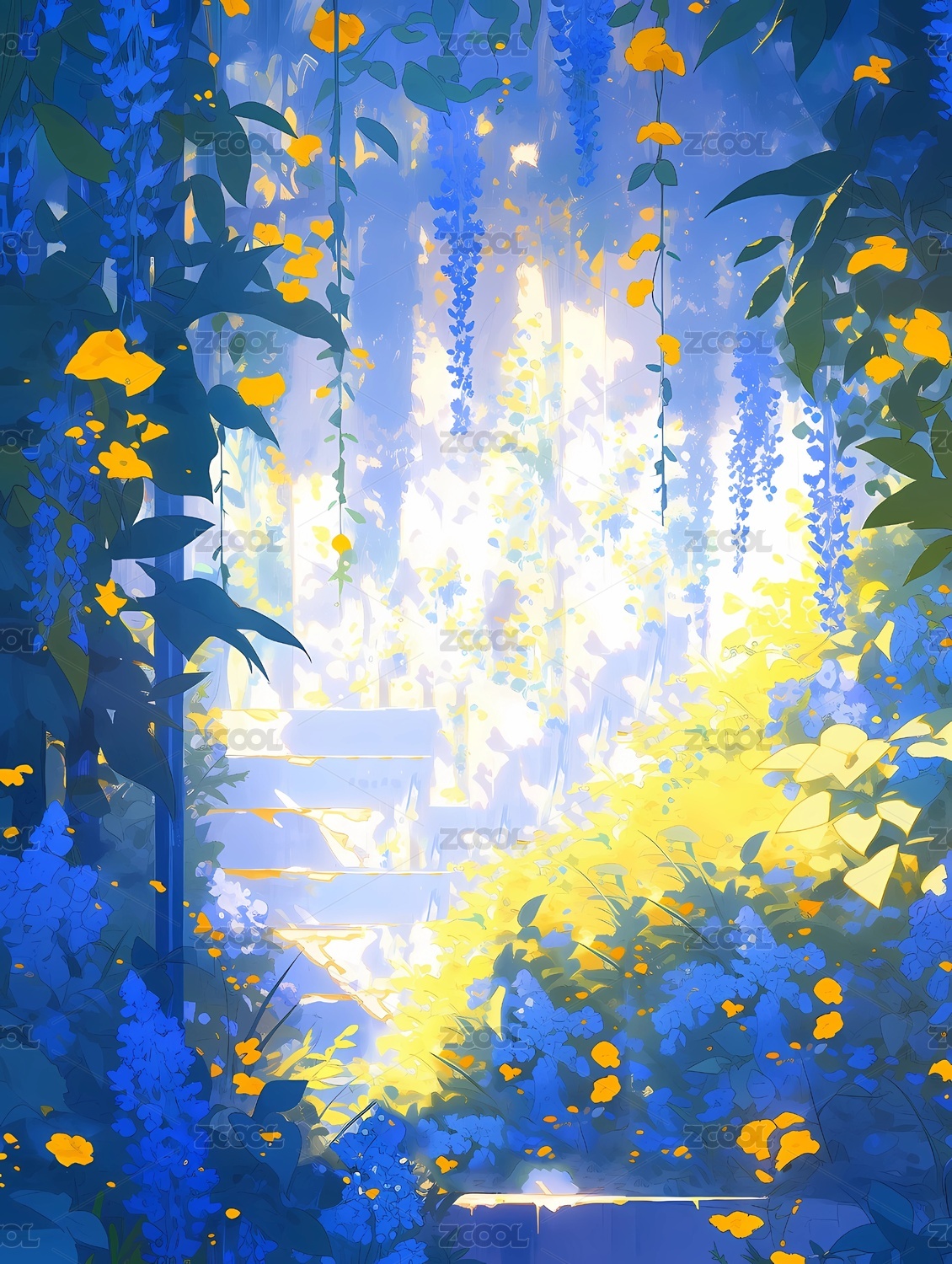 蓝色,小清新,植物,丛林,插画,背景,壁纸