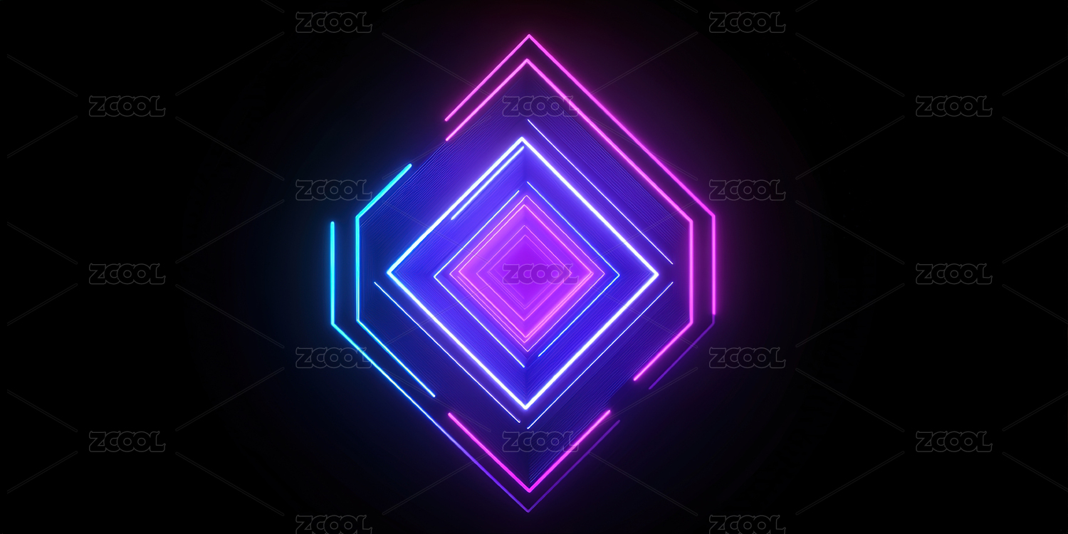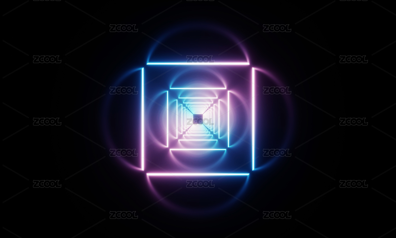 红蓝色霓虹灯环绕构成的发光通道隧道