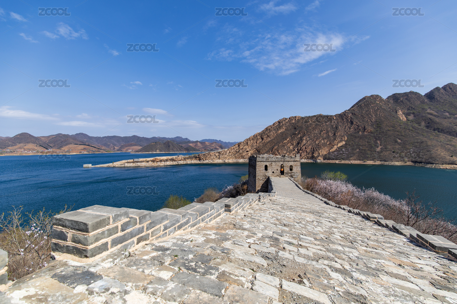水下长城春天桃花盛开的美景