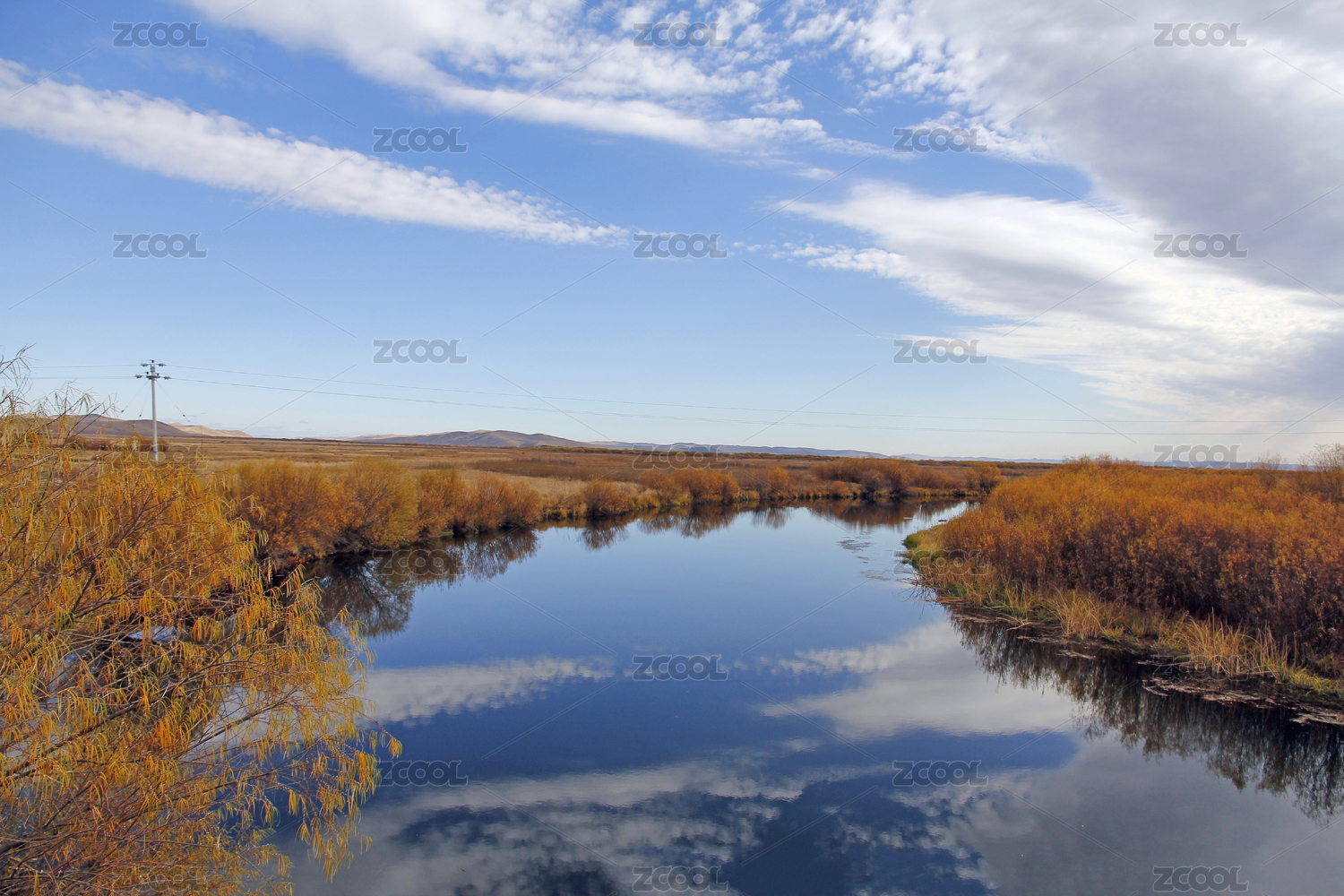 中国河北塞罕坝森林公园深秋时泰丰湖的清晨