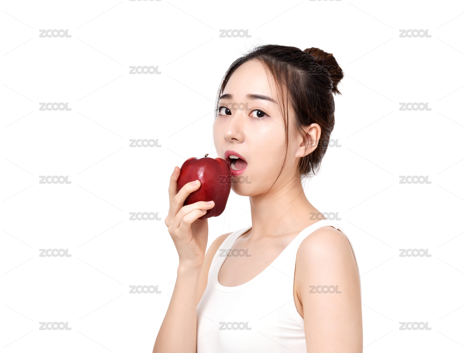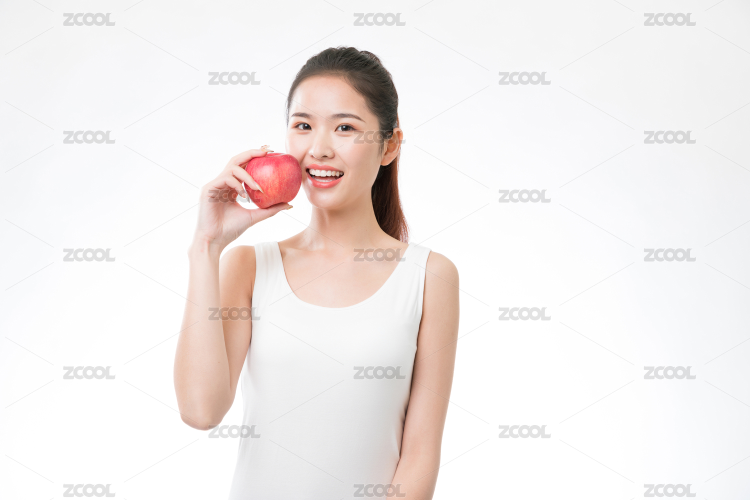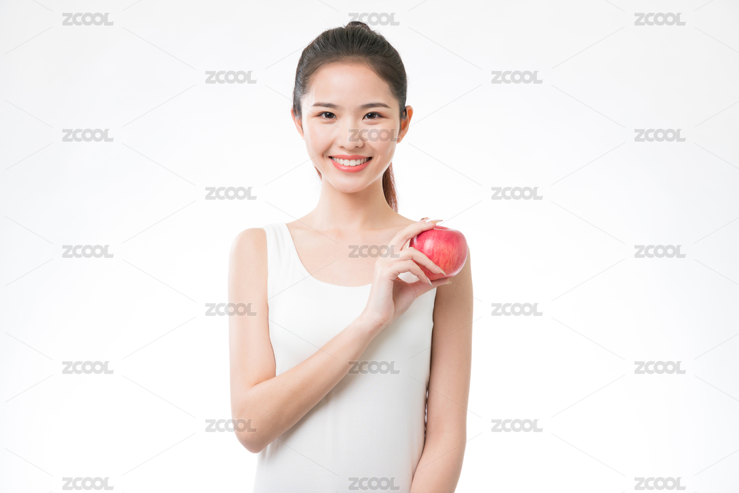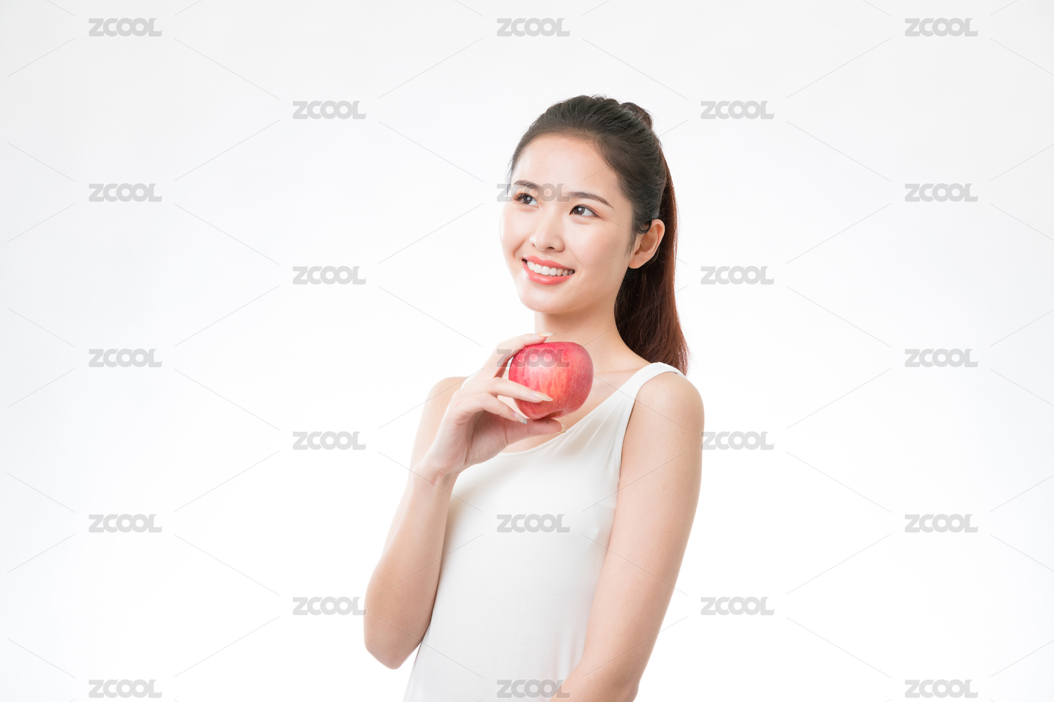 手拿一个苹果的年轻女性