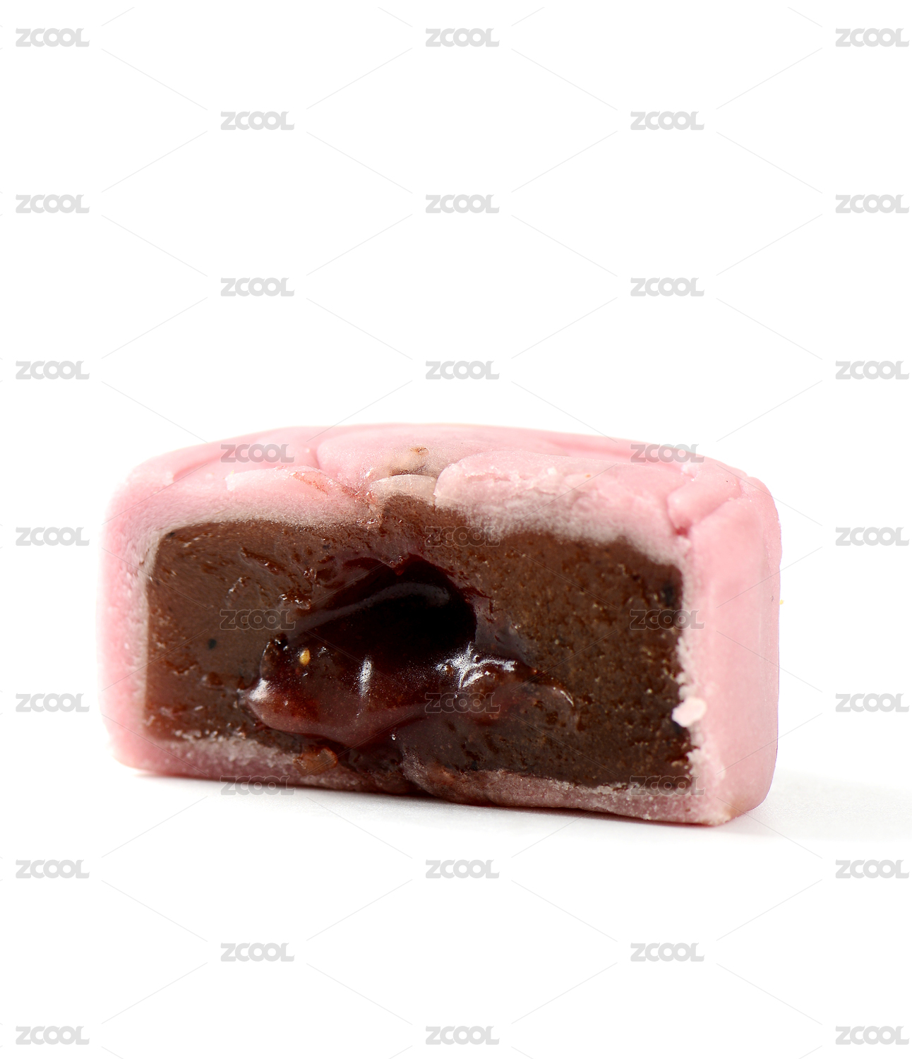 白色背景中的一个白色冰皮月饼的横截面