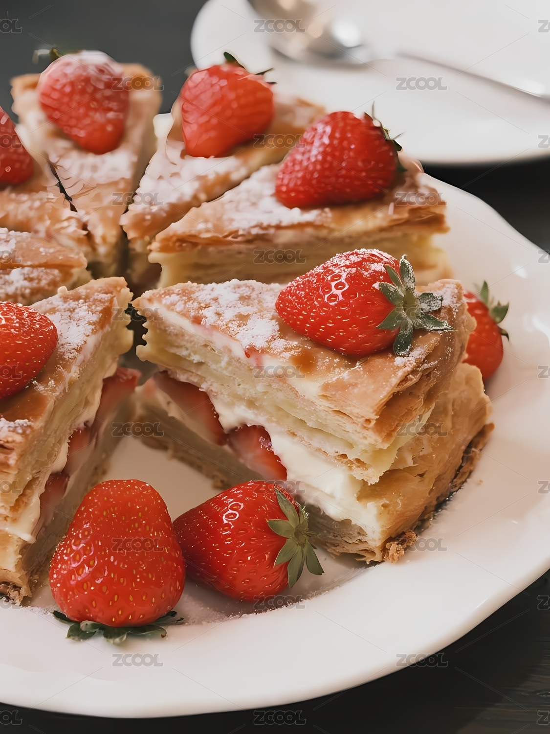 覆盆子树莓卡仕达酱拿破仑酥皮甜品特写