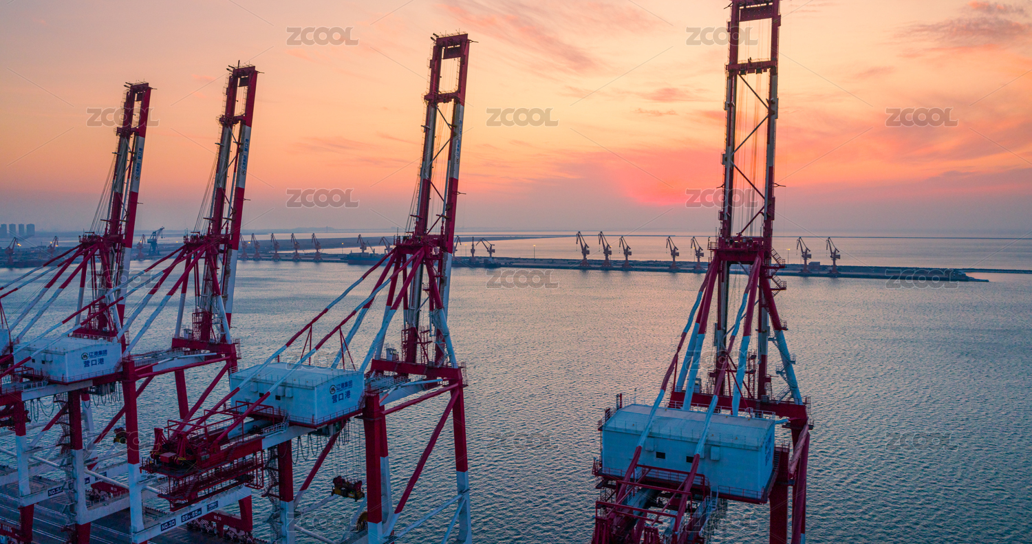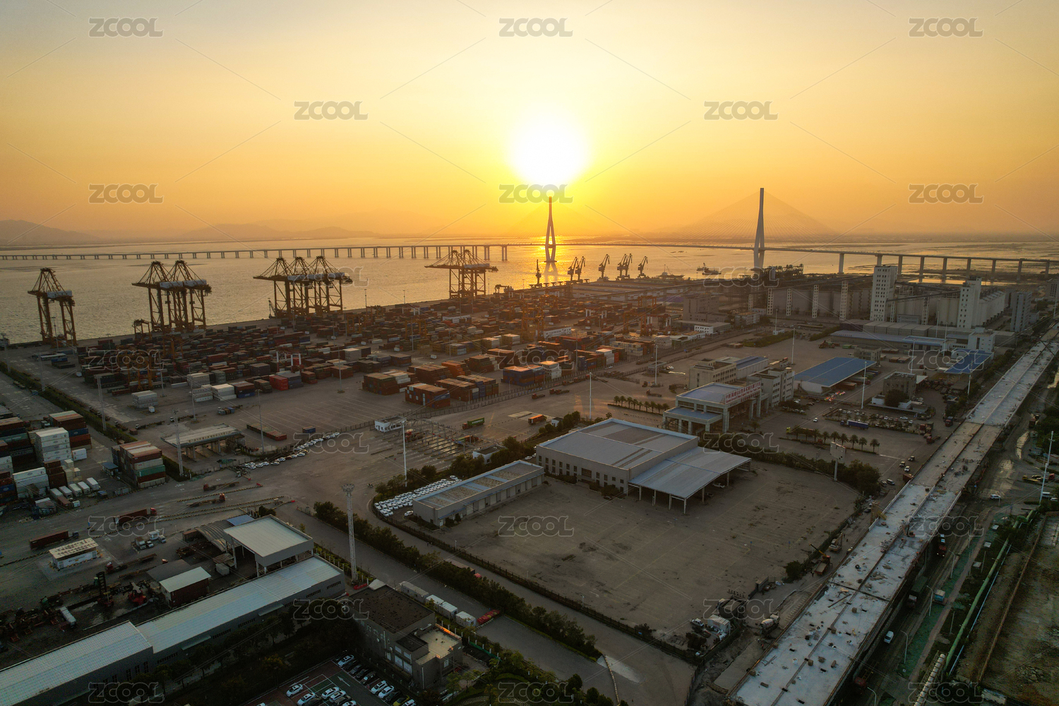中国广东省中山市中山港码头和中山港大桥以及深中通道全景