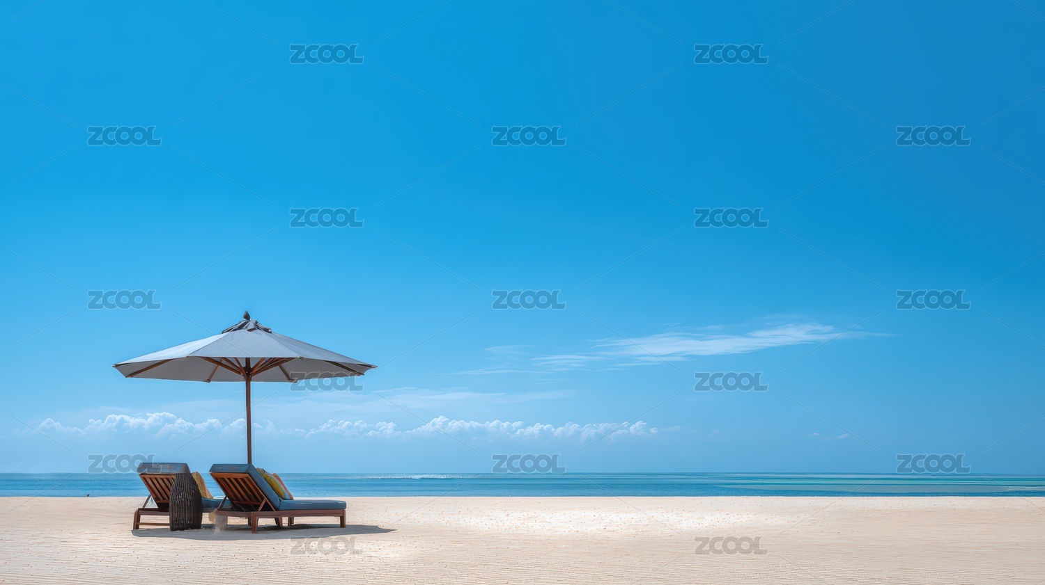 印度尼西亚巴厘岛海边沙滩遮阳伞和沙滩椅