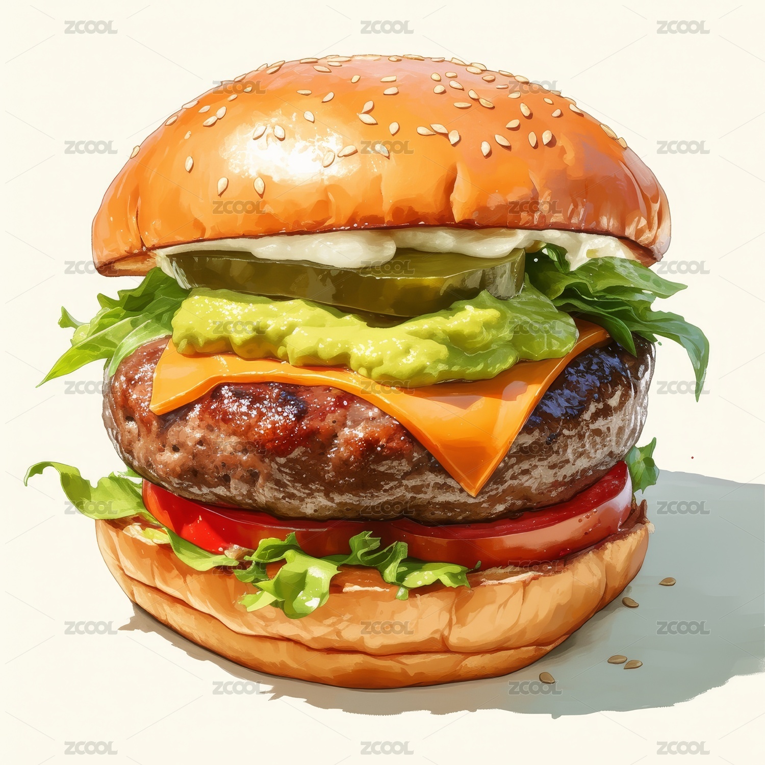 白色桌面,投影,贝果,牛肉,菠萝,生菜,贝果牛肉汉堡