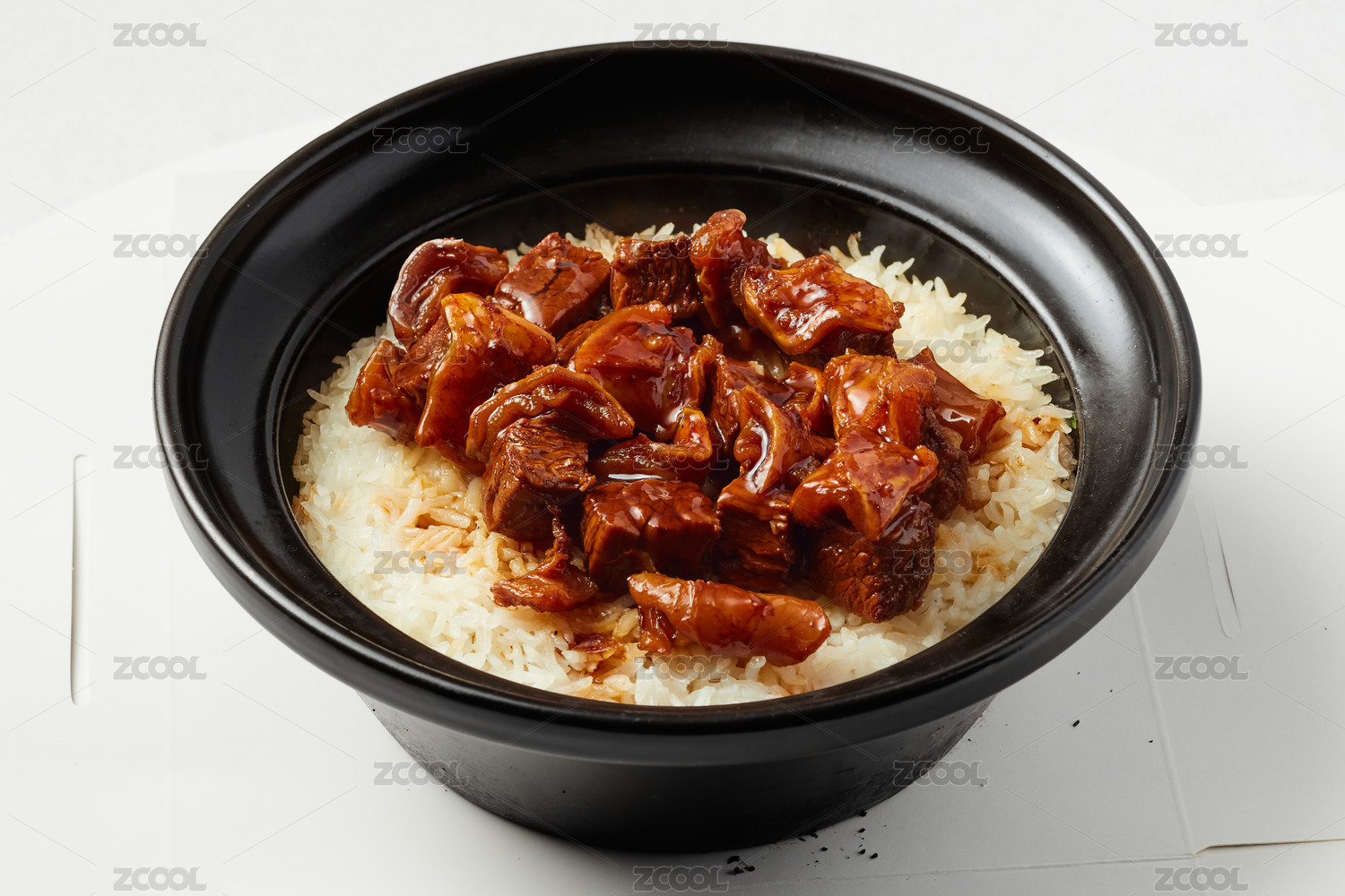 中国上海的一道热菜——香辣鸡块煲仔饭