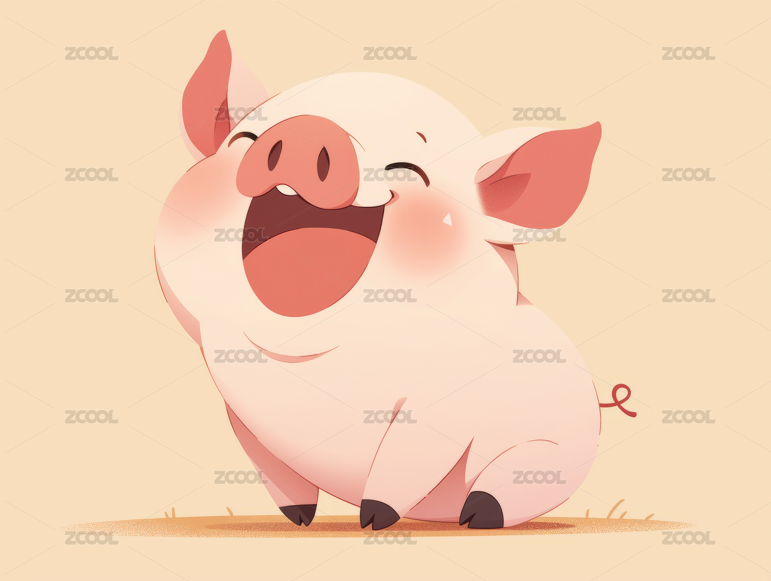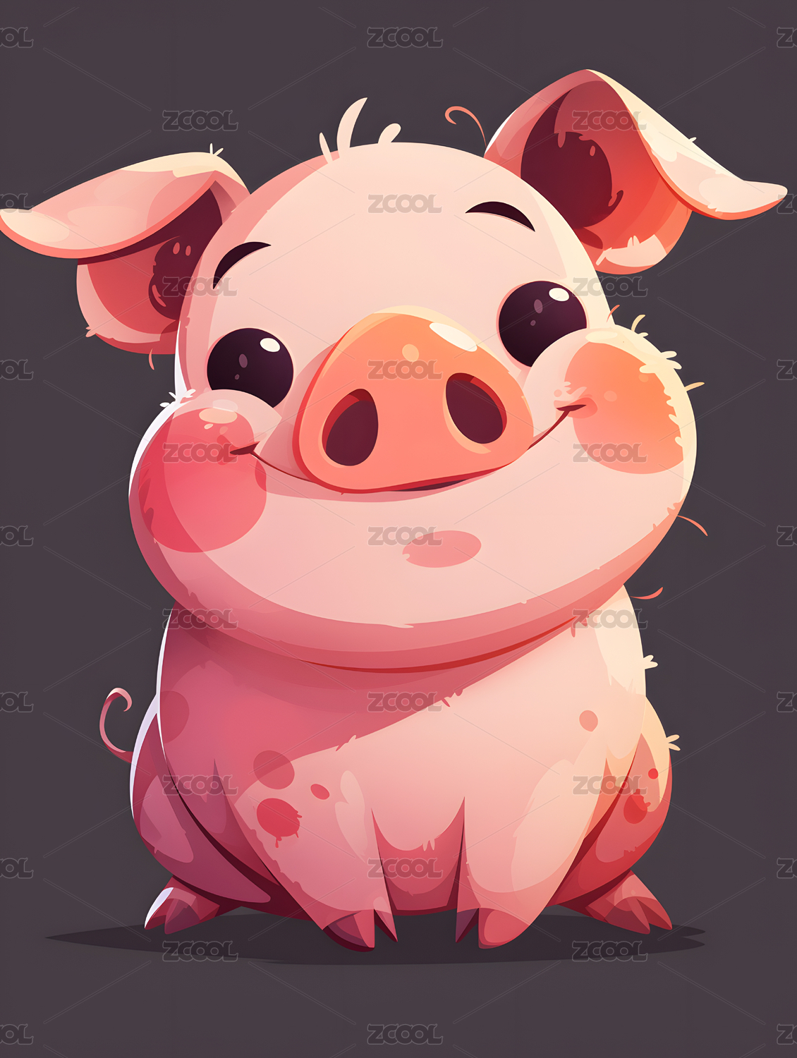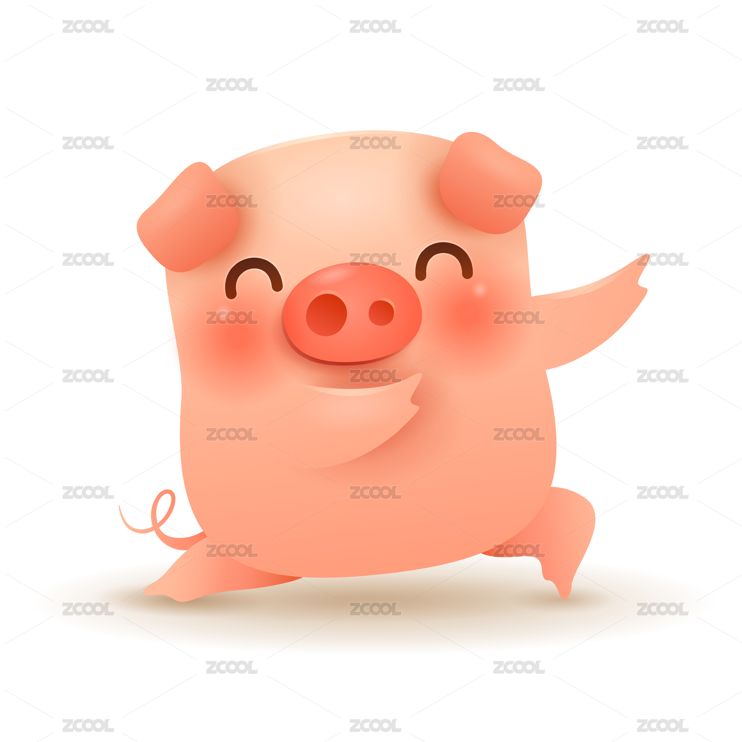 开心喜悦欢快卡通可爱萌Q版猪扁平插画