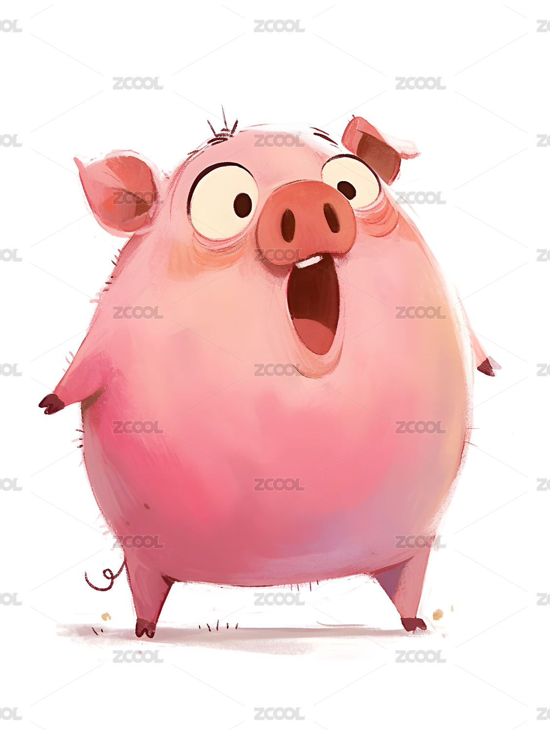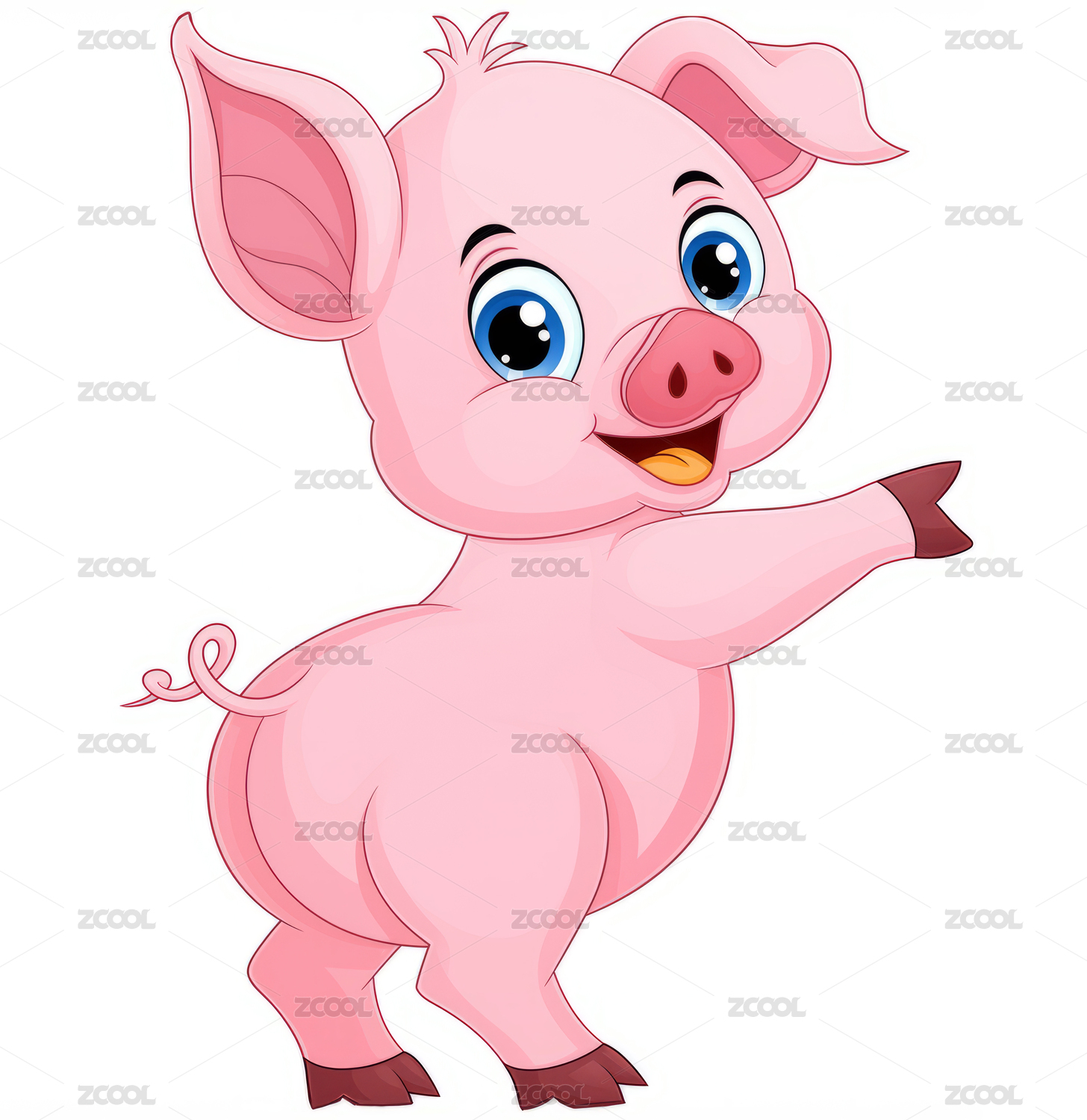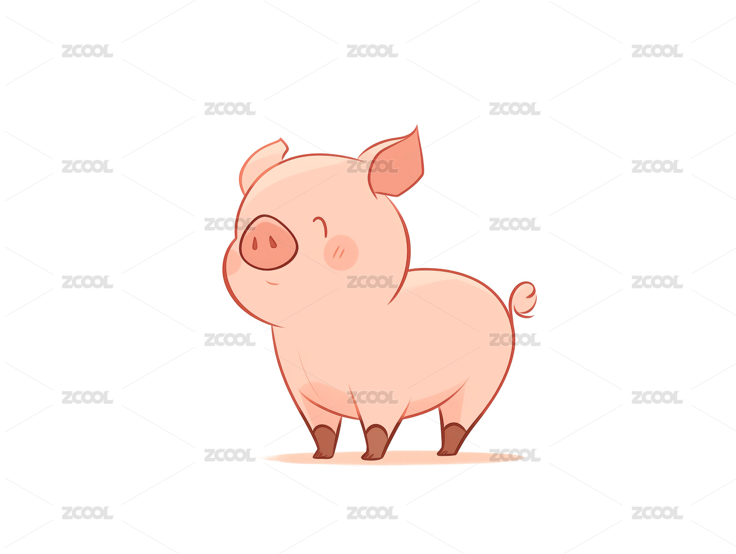 开心喜悦欢快卡通可爱萌Q版猪扁平插画