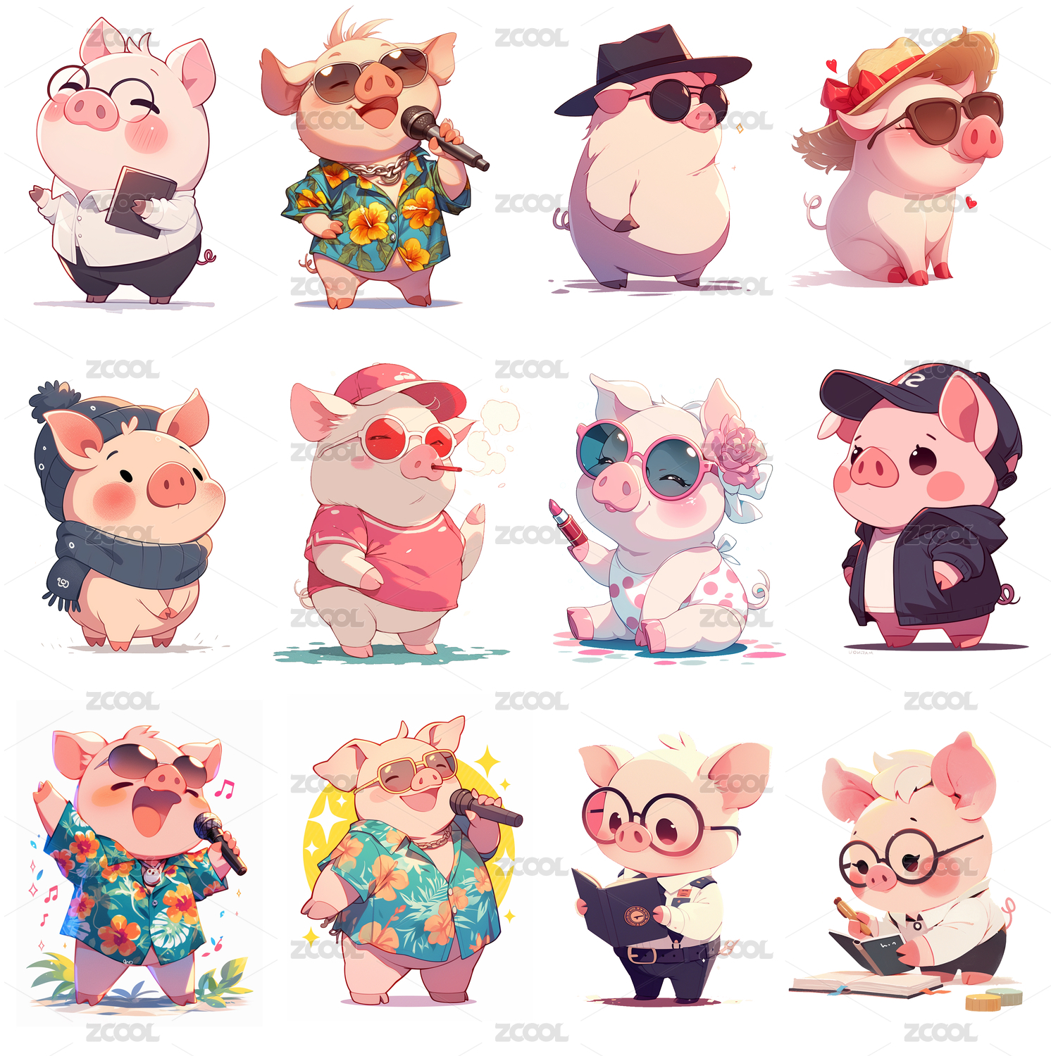 猪,小猪,可爱,贴纸,表情包,猪表情,猪年,生肖,十二生肖,生肖猪