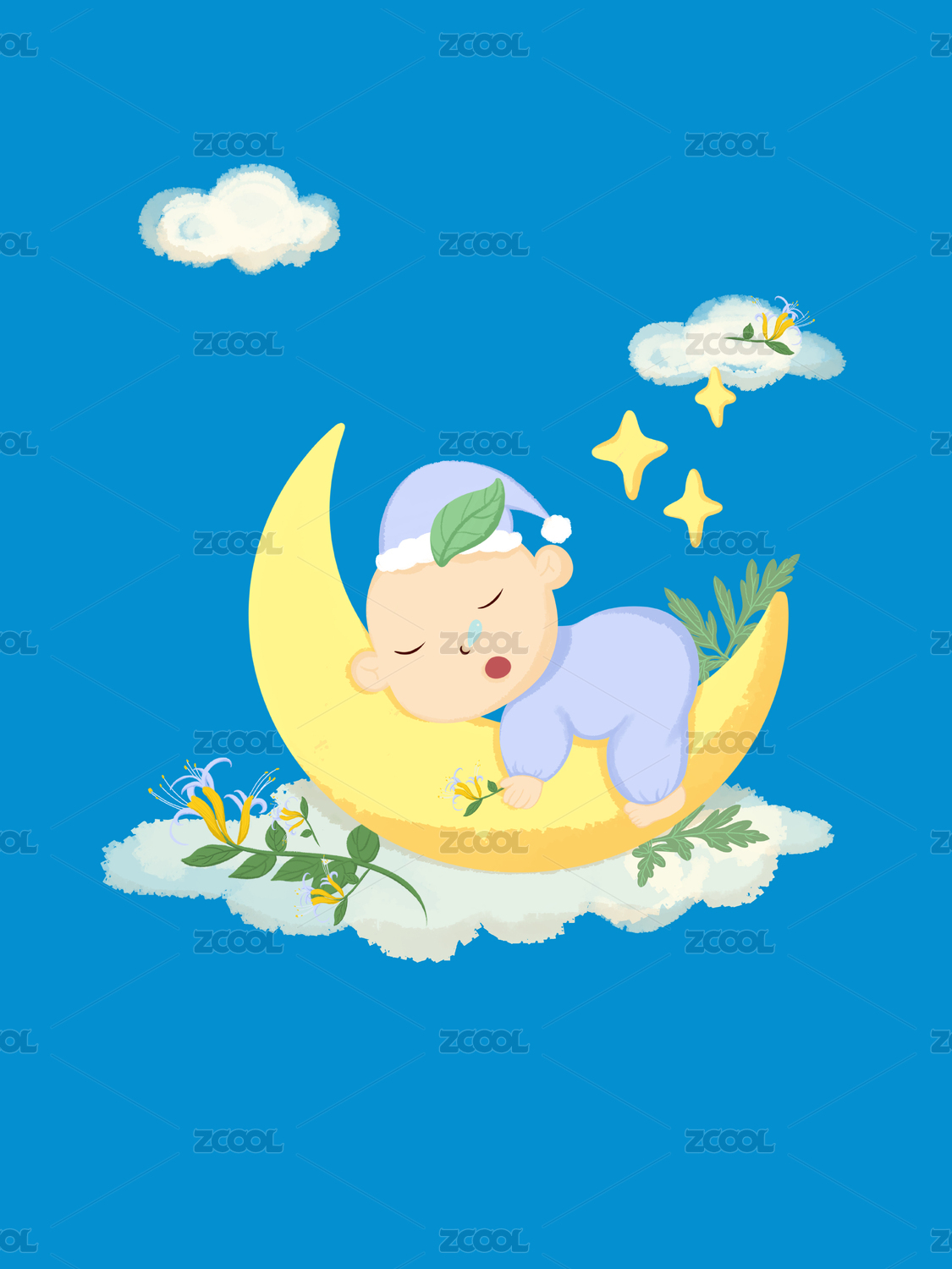婴儿睡觉的各种场景如摇篮云朵月亮等