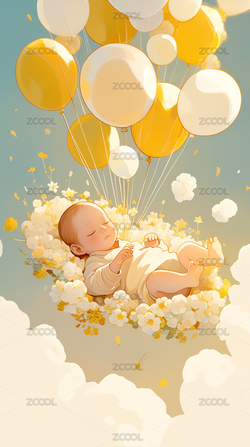 婴儿睡觉的各种场景如气球飞机蛋壳等