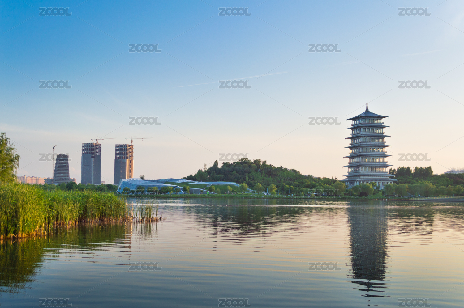 陕西西安市浐灞湿地自然公园风景/西安市地标古代唐代风格长安塔