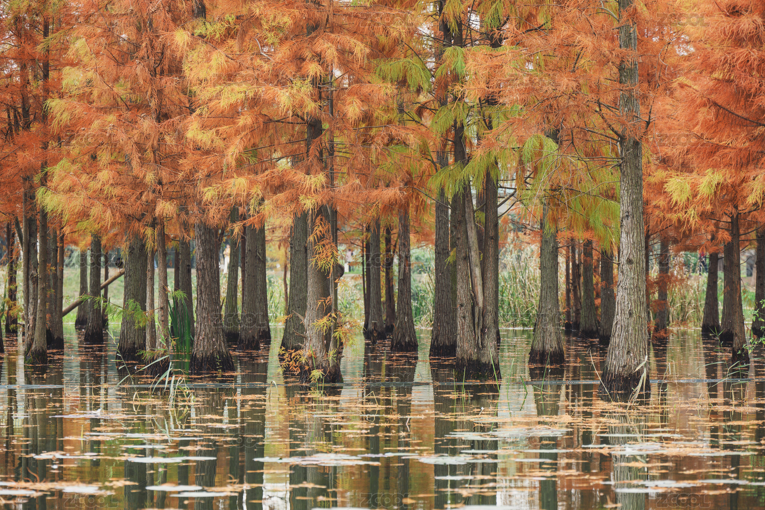 上海青浦郊野公园初冬水上森林红杉风光