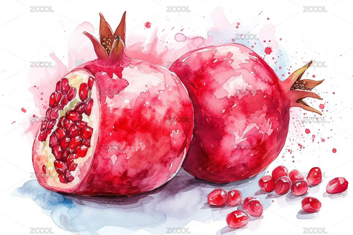 石榴水彩插画