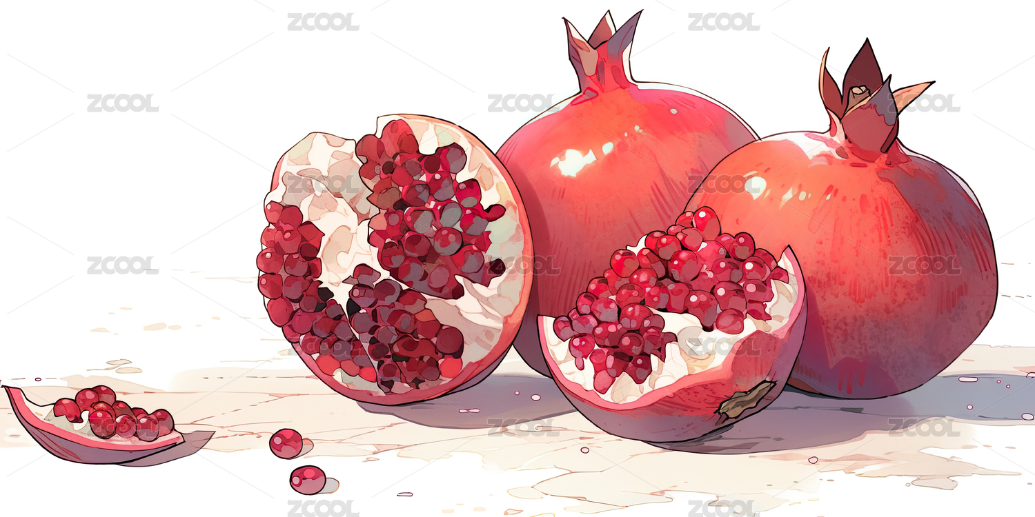 淡彩手绘风格水果系列之石榴