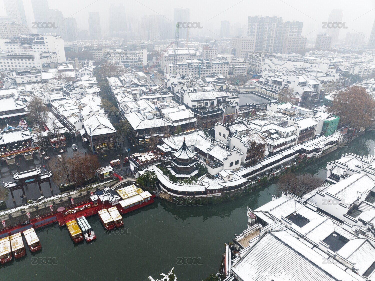 山东济南大明湖超然楼冬天唯美雪景航拍