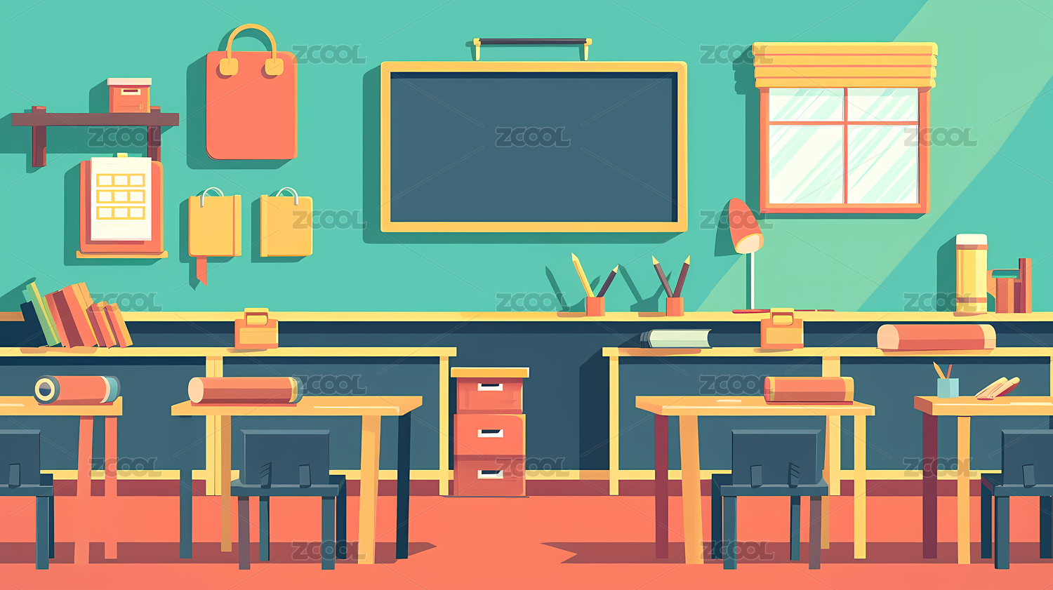 黑板,音响,凳子,桌子,矢量,扁平,教育,柜子,桌椅,教室