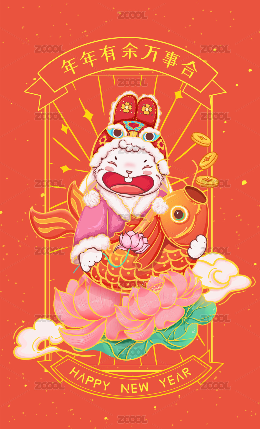 兔,兔年,2023年,兔子,卡通,形象,国潮,插画,中国传统,文化